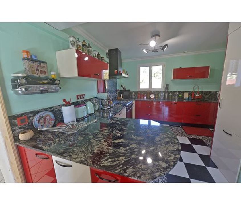 Cette maison d'architecte, récemment construite, offre un espace de vie aux dimensions remarquables, s'ouvrant sur une cuisine aménagée et équipée de haute qualité.