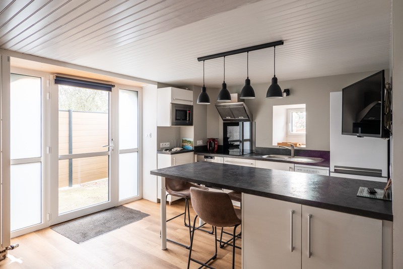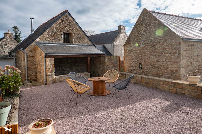 Ensemble immobilier tout en pierre composé d'une maison principale et de 3 gîtes vendus meublés et équipés avec terrasses privatives pour chaque gîte.