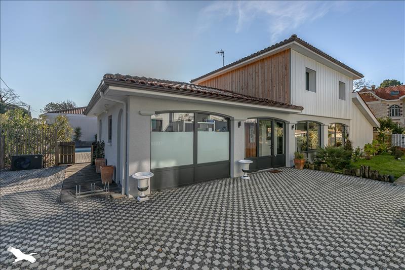 A proximité du Port ostréicole, belle contemporaine d'environ 220m2 composée de 5 chambres avec salle d'eau privative, cuisine ouverte, salon/séjour très lumineux ouvert sur la terrasse, cellier, bureau et un T2 aménagé avec jardin privatif.