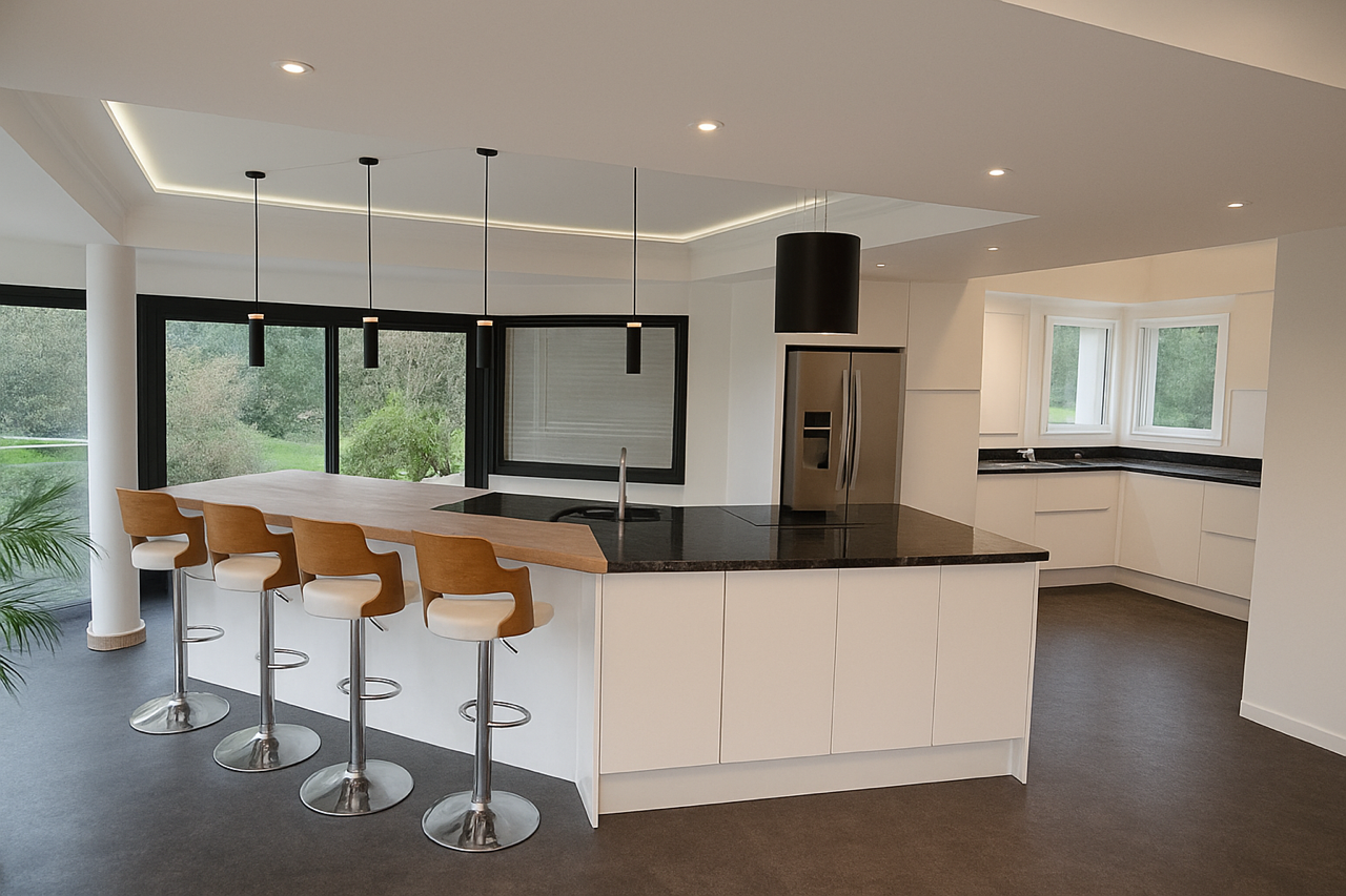 Cuisine américaine aménagée et équipée d'électroménager haut de gamme