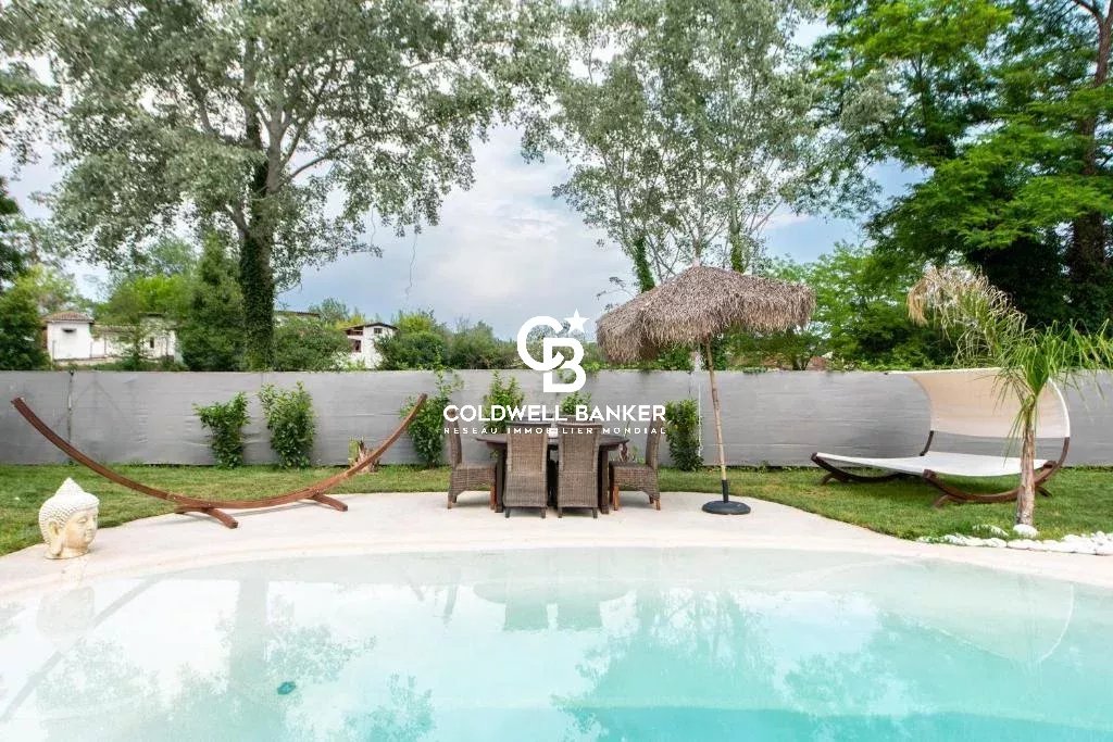 À l'extérieur, profitez d'une somptueuse piscine lagon au sel dotée d'un bain à remous, chauffée, permettant ainsi de s'y détendre même en hiver, ainsi que d'une terrasse de 30 m², idéale pour les moments conviviaux en plein air.