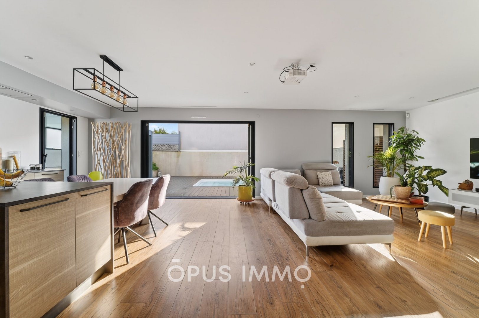 La maison offre 4 chambres (dont une en rez-de-chaussée), des espaces optimisés, une buanderie, des extérieurs sans vis-à-vis et peu contraignants, une piscine chauffée, un garage, 2 places de parking, ainsi que des équipements modernes répondant aux standards actuels de confort et d'efficacité énergétique (BBC RT2012, domotique, panneaux solaires).