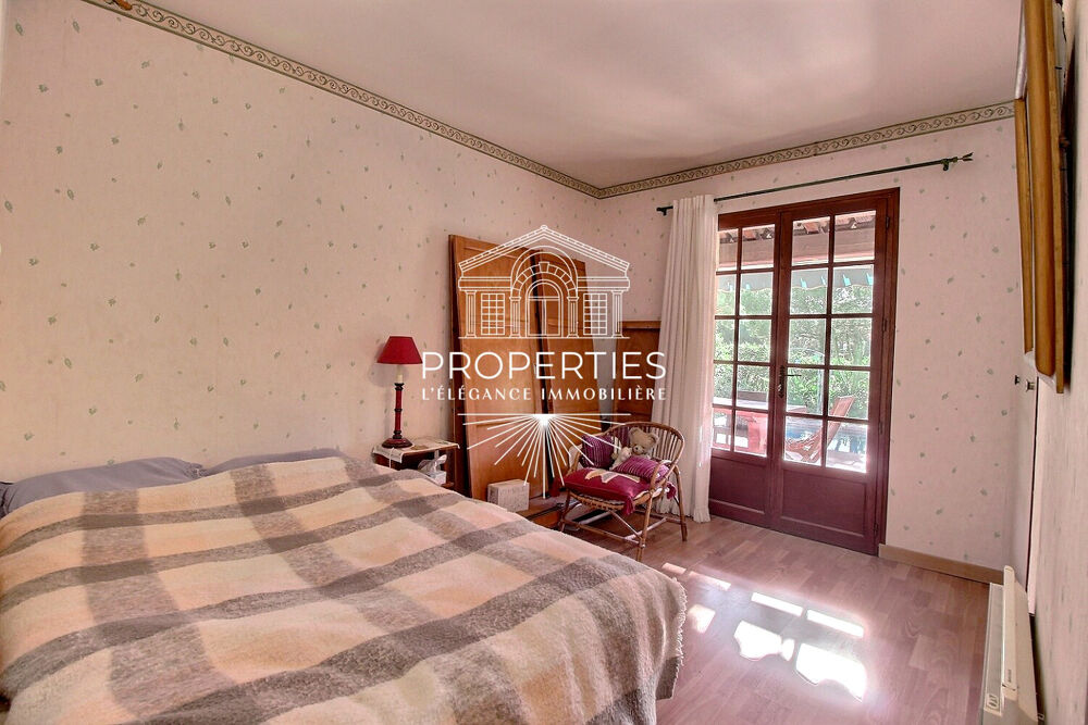 PROPERTIES Le Lavandou vous présente à la vente cette vaste maison indépendante de 135m² édifiée sur un terrain plat de 1 156m². Située dans le quartier recherché du haut Para ce bien se compose au rez-de-chaussée d'une belle pièce de vie avec sa cheminée, donnant sur une cuisine ouverte équipée et aménagée (avec cellier), ouvrant sur une grande terrasse exposée Sud Ouest épousant la piscine. Trois chambres, une salle de bains, un WC indépendant et une buanderie complètent le niveau. Au 1er étage, une mezzanine et une quatrième chambre proposent un espace de vie supplémentaire. Le gros plus, le vaste garage de 35m² . Prévoir travaux de rafraîchissements. Rare à la vente !