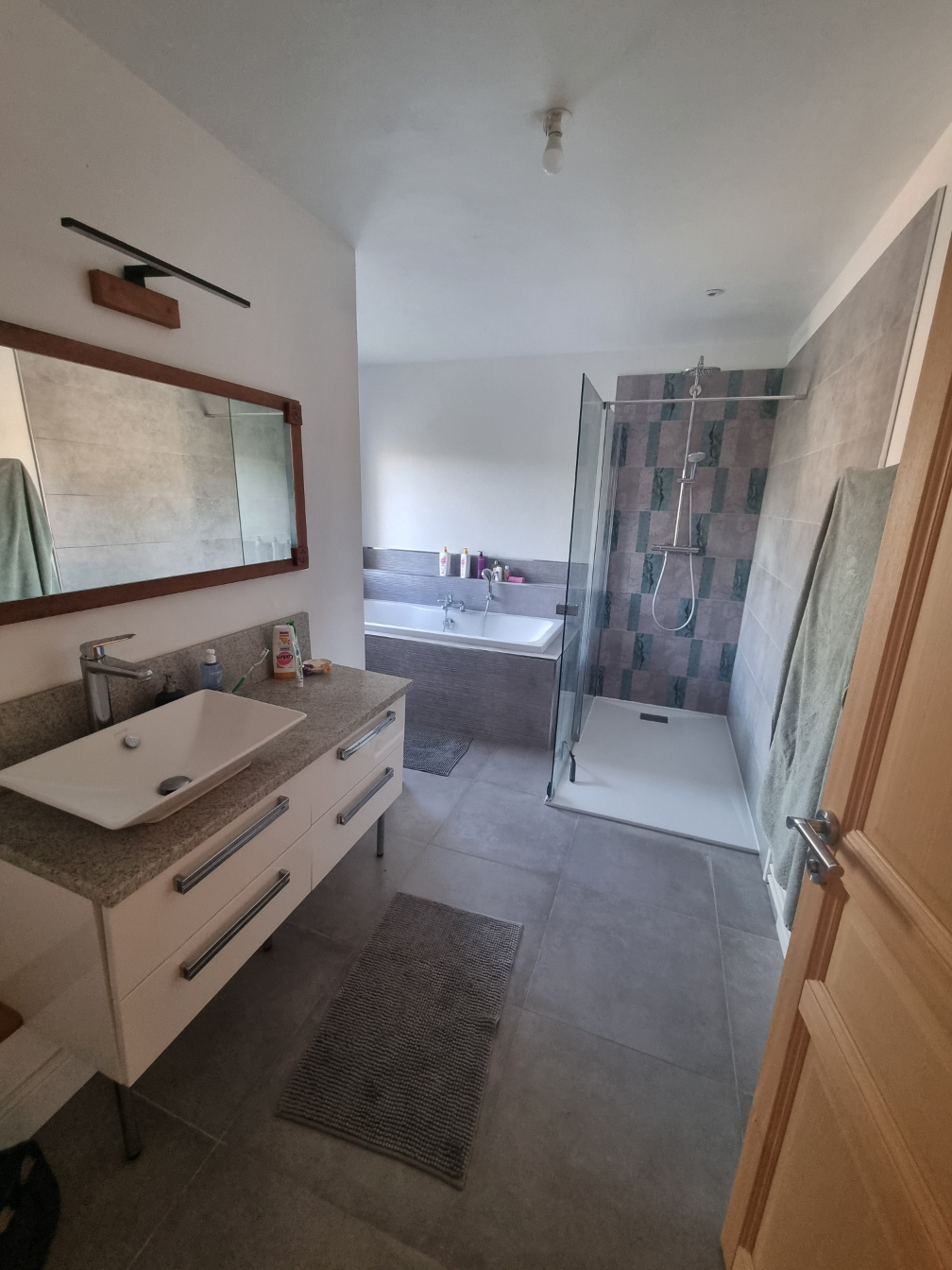 L'étage se compose de 5 chambres dont 2 avec terrasses, 2 salles de bains avec baignoire et douche, WC