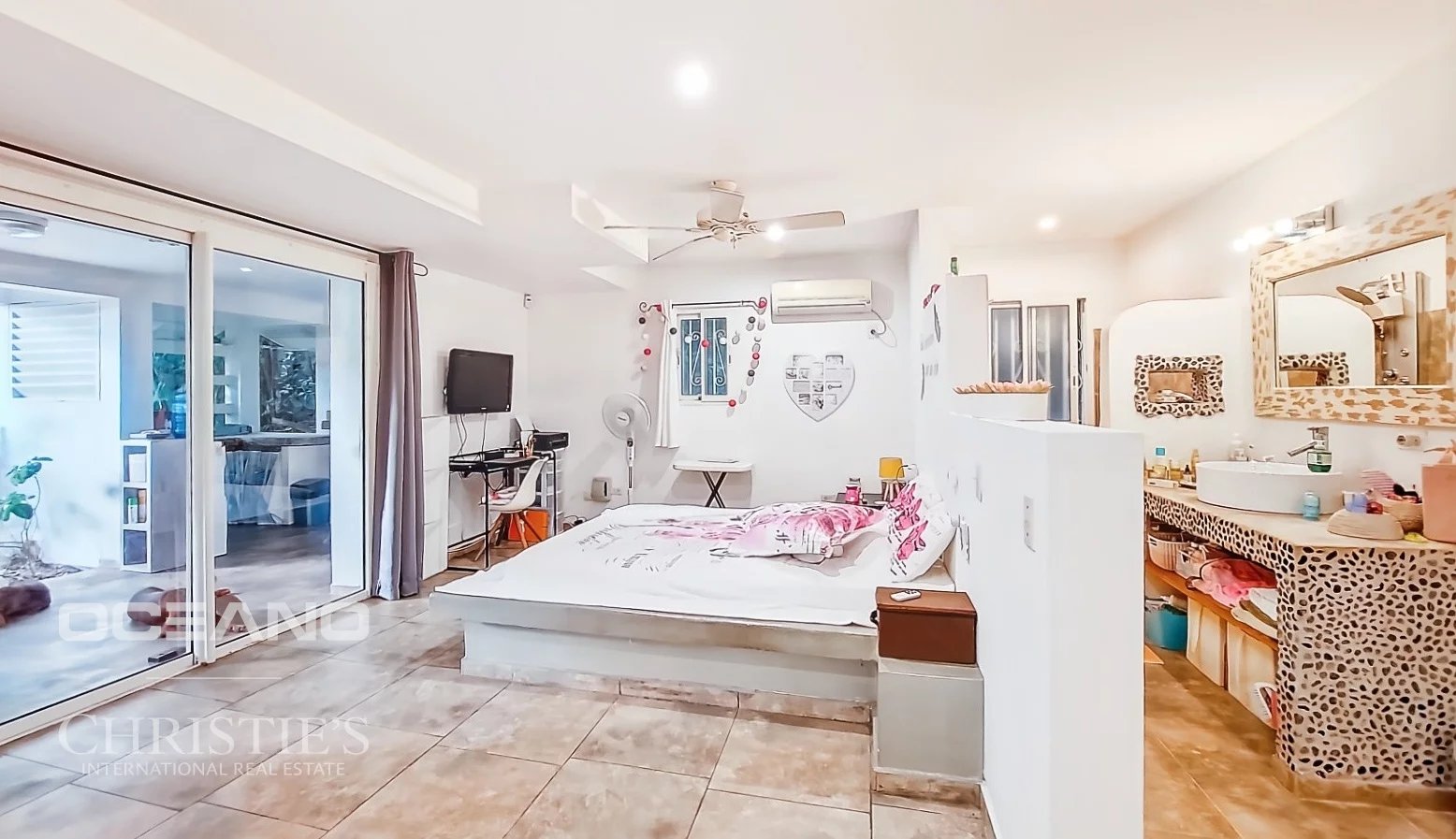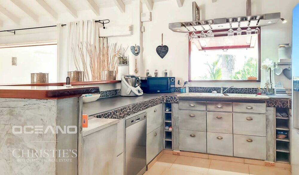 Le cœur de la maison s'articule autour d'un magnifique espace de vie lumineux, avec une cuisine ouverte donnant sur le salon, la terrasse de la piscine et un ravissant jardin tropical soigneusement fleuri, idéal pour les moments de détente et de convivialité.