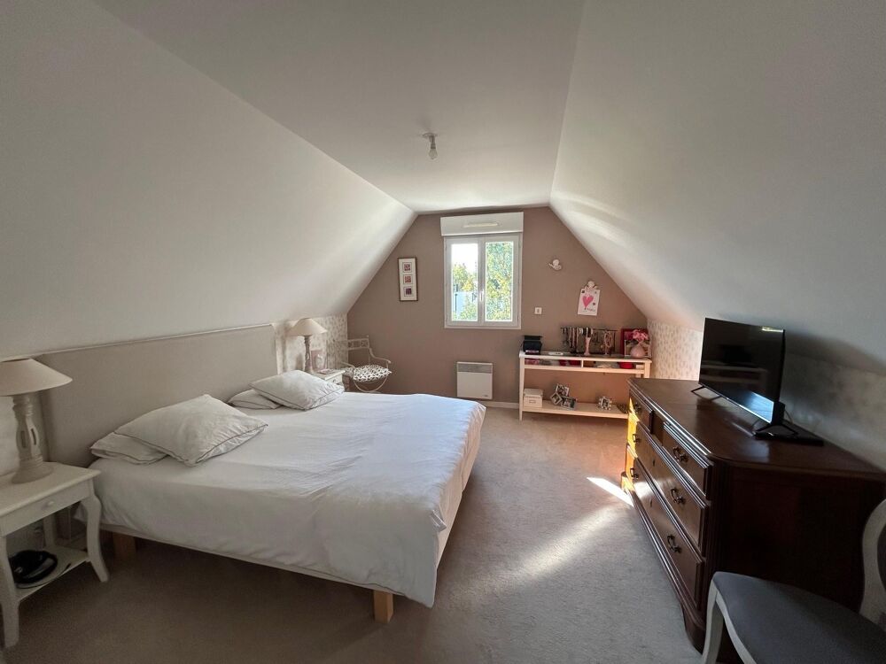 A l'étage, un grand palier dessert trois chambres, rangements, salle de bains avec douche et WC.