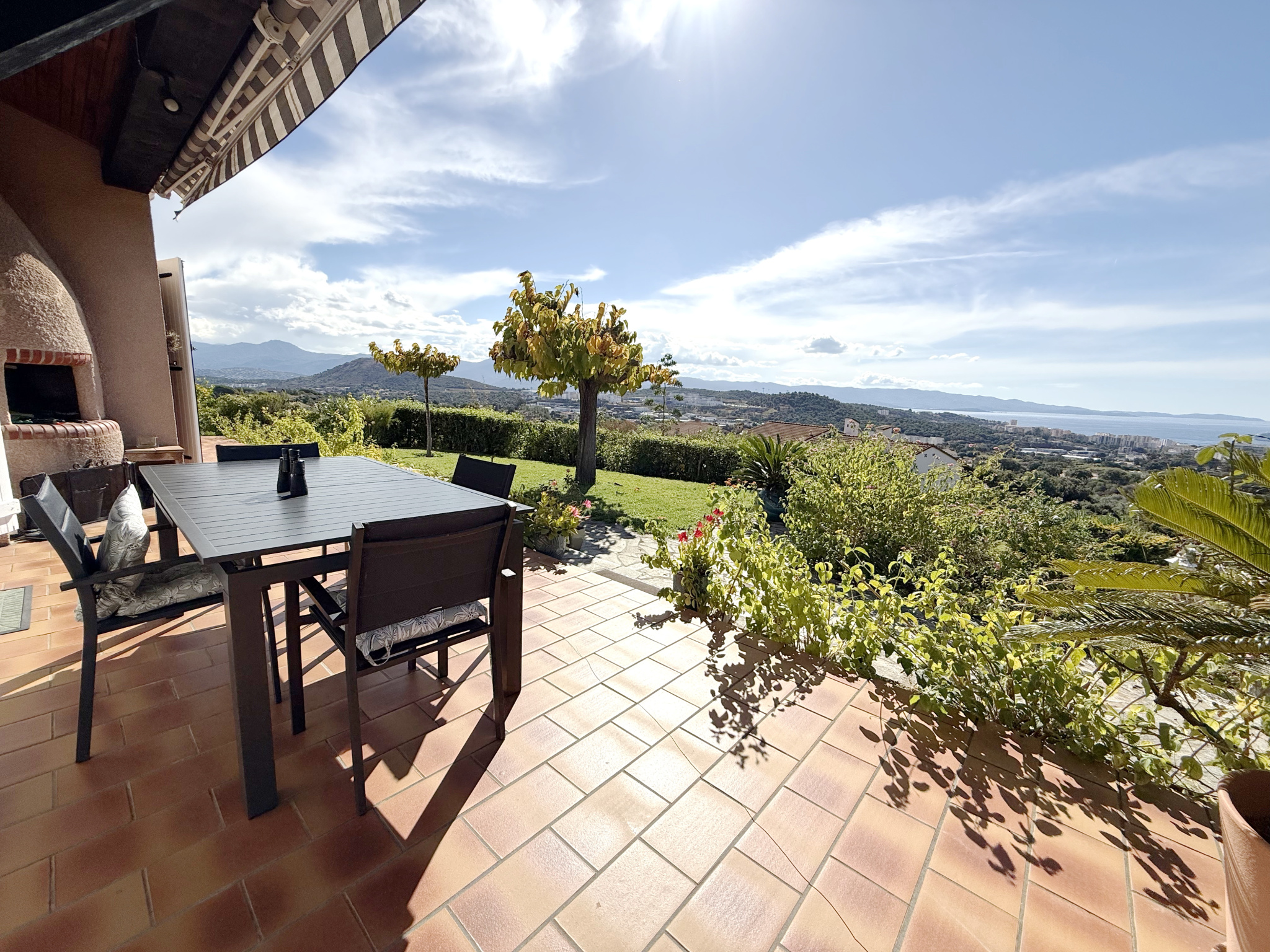 Terra Immobilier a le privilège de vous présenter en exclusivité à Ajaccio, au sein du très recherché Domaine de Suartello, une propriété d'exception nichée dans un environnement résidentiel privilégié, à proximité immédiate de toutes les commodités.Cette élégante villa T4 de 110 m2, aux volumes généreux et aux prestations soignées, offre une vue mer panoramique absolument remarquable. Elle se compose d'un hall d'entrée raffiné, d'un vaste séjour baigné de lumière avec cheminée, d'une cuisine entièrement équipée, de trois chambres confortables, d'une spacieuse salle de bains avec baignoire et douche.