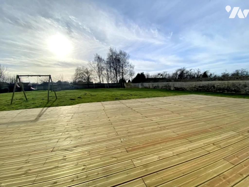 A l'extérieur, agréable jardin de plus de 3 300 m2 clos de murs sans vis-à-vis avec sa terrasse en bois.