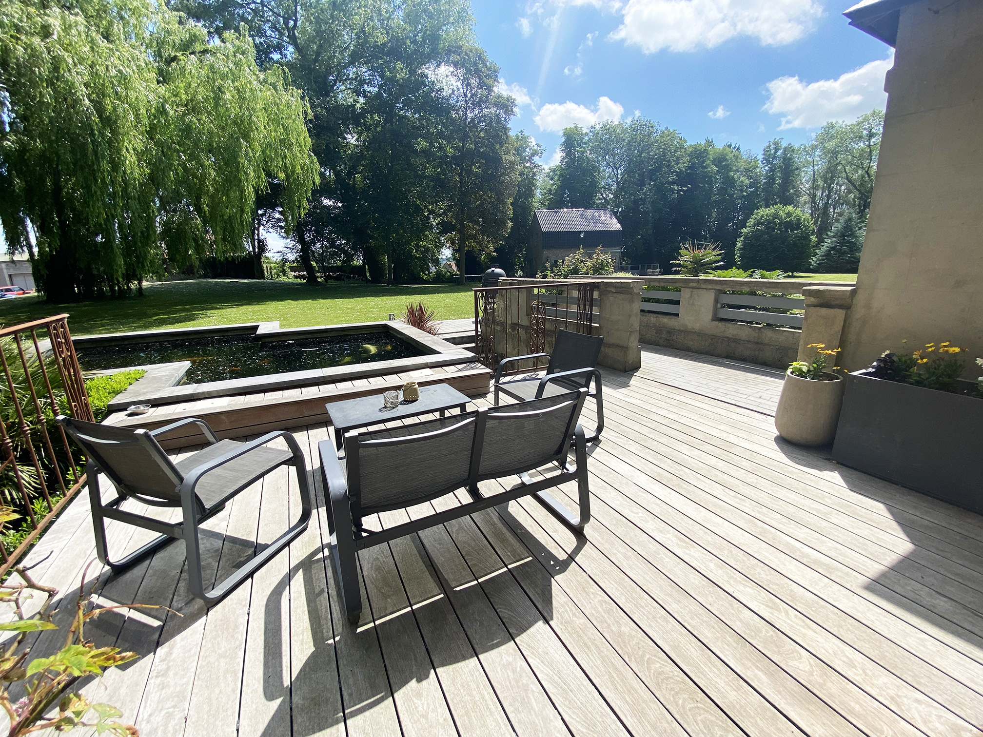 Propriété d'exception nichée au coeur de son parc arboré de 11800 m2. Accès pratique aux commerces du village à pied.