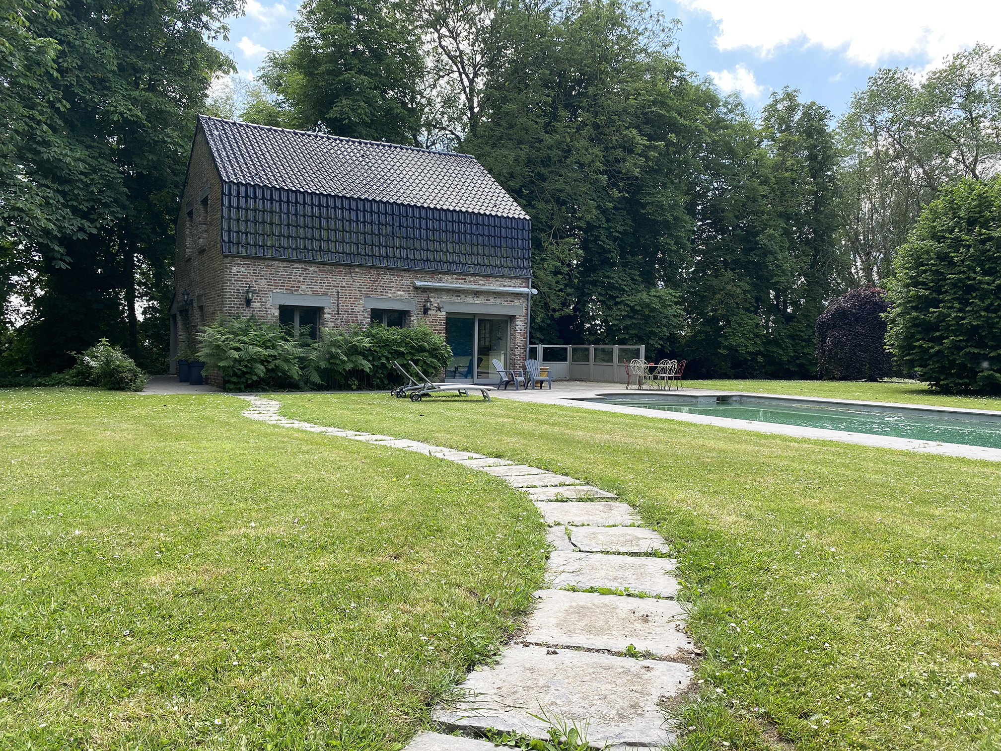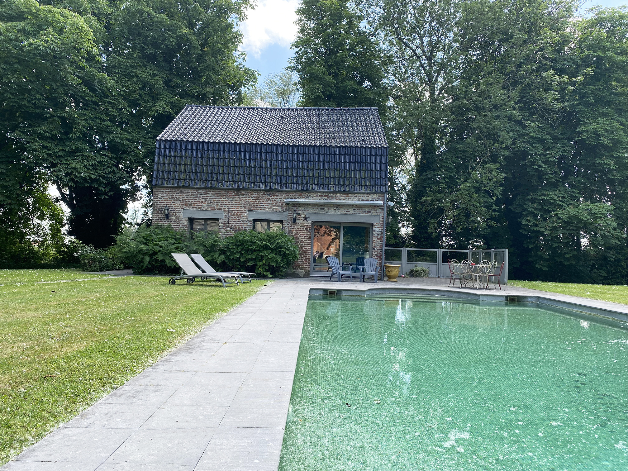 Une annexe plus récente de 90 m2 est utilisée comme maison d'amis et local technique pour la piscine chauffée.