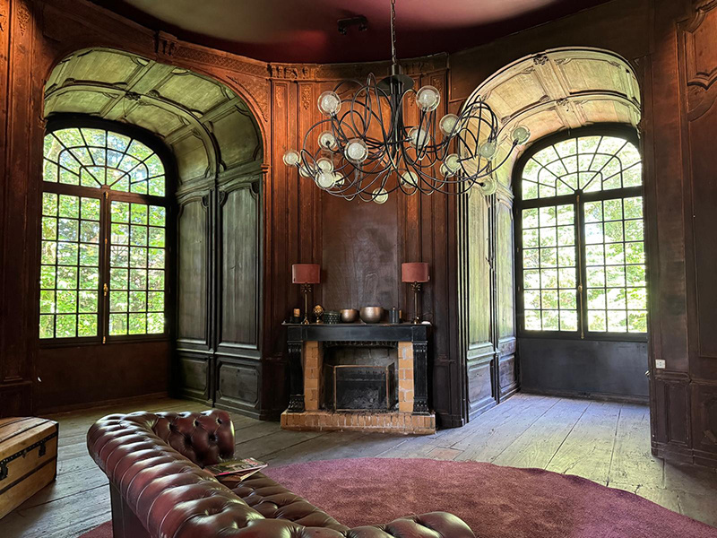 Sa tour du 14ème siècle est un joyaux médiéval. Elle est utilisée, à ce jour, comme espace détente atypique. Sa salle cylindrinque de 50 m2 et sa structure historique composée de boiseries moulurées d'époque, cheminée en pierres noires et briques rouges permet tout autre projet d' aménagement original.