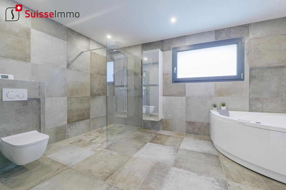 UNIQUE SUR LE PAYS DE MONTBELIARD ! A retrouver en exclusivité dans nos agences SUISSE IMMO de Montbéliard, Maîche, Morteau et l'Isle-sur-le-Doubs. MONTBELIARD - VILLA de 2021 de 302 m2 (220 m2 habitables) Pour clientèle exigeante : Prestations haut de gamme - Finitions irréprochables. Les + : - Construction ENERGIEBLOC + isolation extérieure + intérieure, pompe à chaleur, climatisation => DPE en cours - Larges baies coulissantes aluminium affleurantes avec volets alu électriques / vitrage anti effraction. - Domotique complète (tout est pilotable à distance, vidéosurveillance, ?) - Tous les sols ont un plancher chauffant / rafraîchissant + grès cermam (imitation parquet dans les chambres) - Piscine chauffée avec traitement automatisé, volet immergé, etc - Pool house avec terrasse couverte, douche, WC, etc - Aménagements extérieurs avec les meilleurs matériaux du moment, jardin sans vis-à-vis. - Toutes les pièces (Séjour, cuisine et chambres) ont un accès terrasse - Jardin arboré avec des essences premium + portail autoportant avec mécanisme invisible, tout a été pensé pour limiter l'entretien du jardin - Terrain de pétanque Au RDC, de plain-pied : - Hall, pièce de jour (69,4 m2) - Cuisine indépendante équipée haut de gamme, meubles sans poignées + cellier/buanderie ( 19,67 m2 + 9,34 m2) - Suite parentale avec salle d'eau + dressing (22,83 m2) - Wc indépendant A l'étage : - 2 chambres (21,04 et 16,24 m2), avec accès à une terrasse en grès céram de 18,19 m2 avec gardes-corps vitrés - 1 chambre ( 16,24 m2), avec accès à une terrasse en grès céram de 28,55 m2 avec gardes-corps vitrés - Salle de bains ( 12,99 m2) Annexes : - Garage double (57,23 m2 - 8,26 m * 7,06 m) - Pool House (32 m2) avec partie sanitaires, et terrasse couverte avec panneau micro-perforé électrique Découvrez mes autres biens à la vente : Nicolas PACQUOT - Suisse Immo