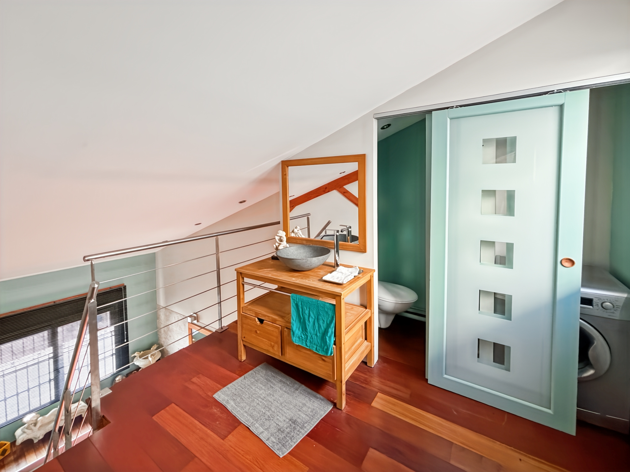 Une pièce de 88 m2, avec chambre en mezzanine, salle de bains et WC, offre un potentiel unique pour créer un studio indépendant, un atelier, une salle de sport ou un espace professionnel.