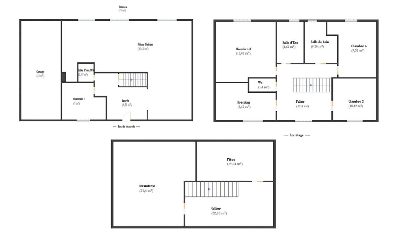Au rez-de-chaussée, une spacieuse entrée ouvre sur un vaste et LUMINEUX séjour double de 45 m² avec une cuisine dînatoire entièrement aménagée, formant un espace de vie convivial et moderne, ouvert sur une magnifique terrasse de 79 m² exposée plein sud. Une chambre ainsi qu'une salle d'eau avec WC complètent ce niveau.