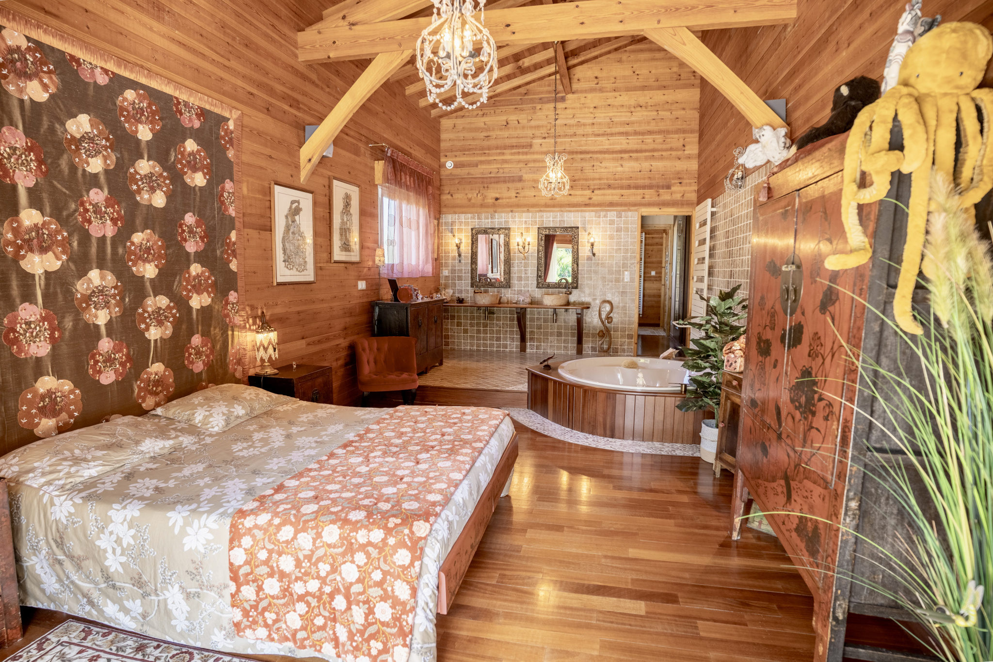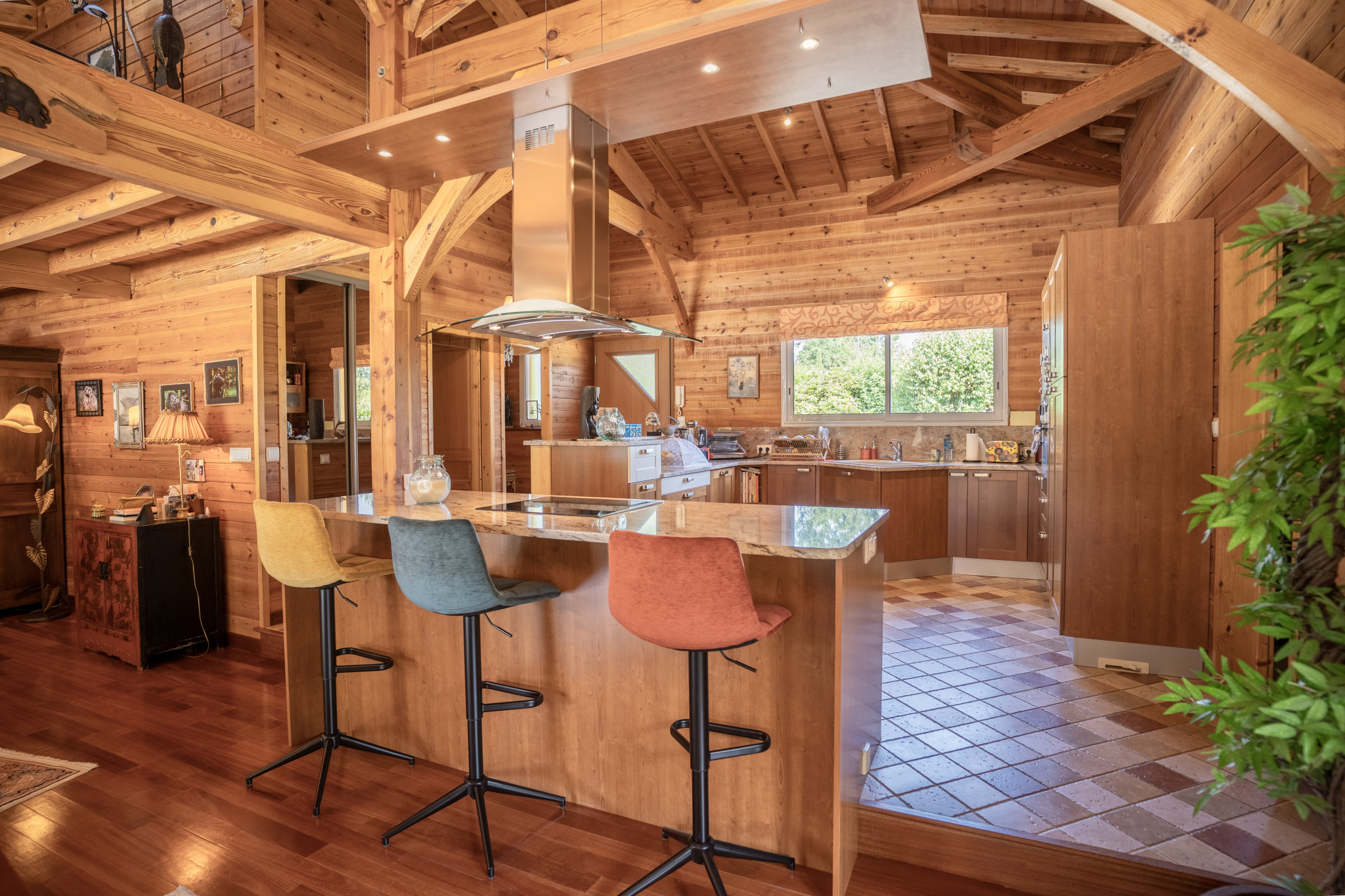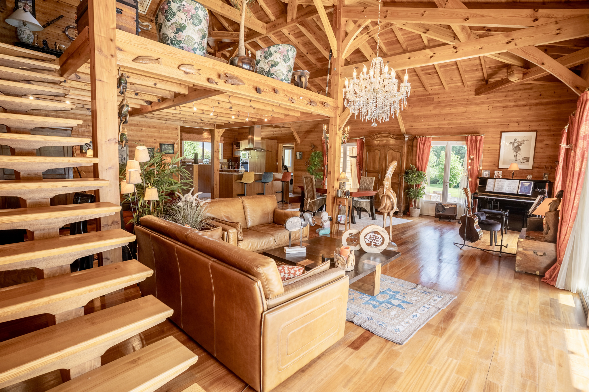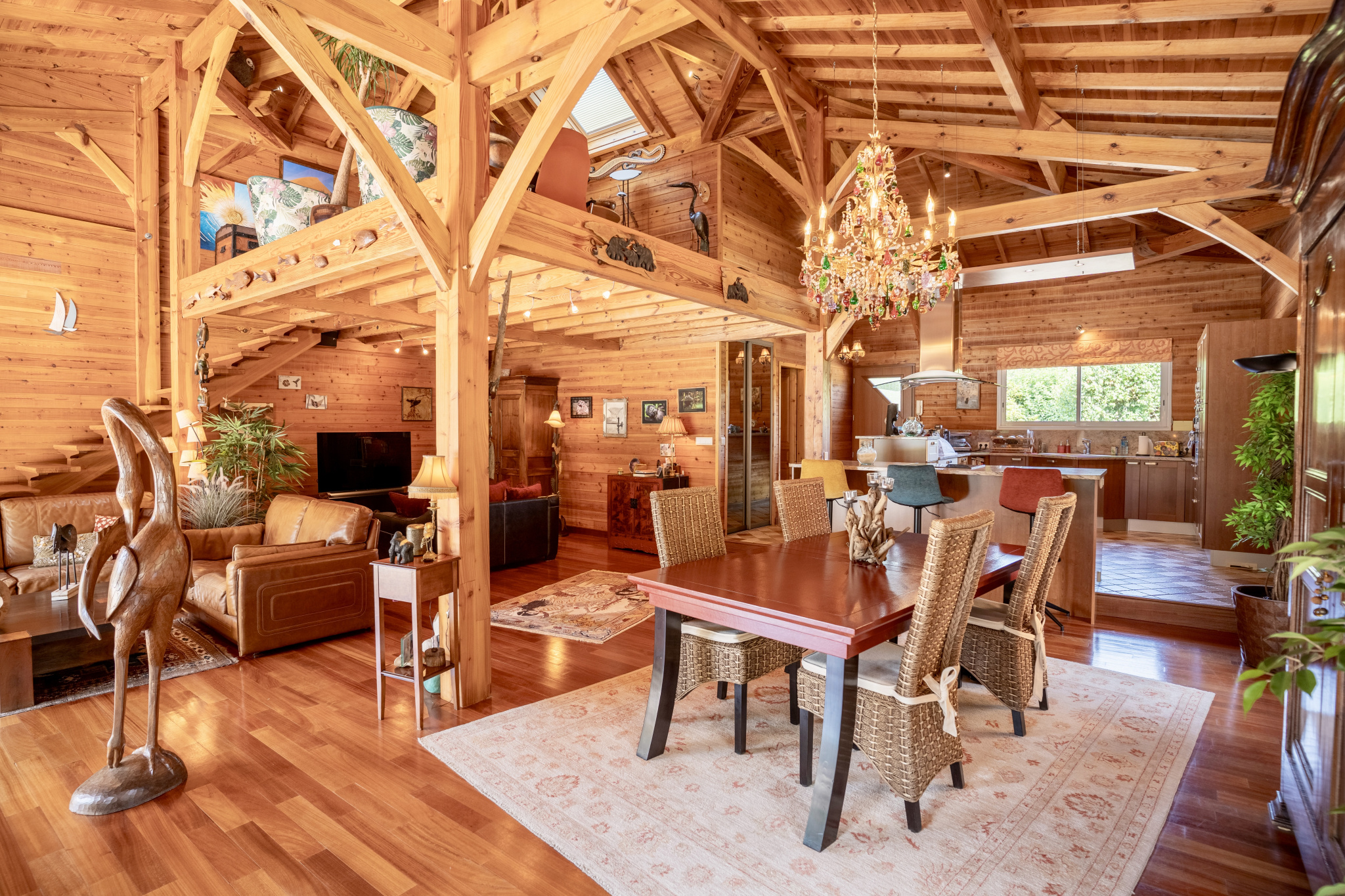 À l'abri des regards, au cœur d'un parc paysagé de 4 836 m2 ouvert sur un bois classé non constructible, cette propriété confidentielle de 202 m2 offre une atmosphère rare, faite de lumière, de calme et d'espace.Construite par un Compagnon du Devoir, la maison révèle une architecture authentique où chaque matériau a été choisi pour durer : mélèze de Sibérie en façade, bois massif doussié à l'intérieur, marbre brut dans les pièces d'eau.