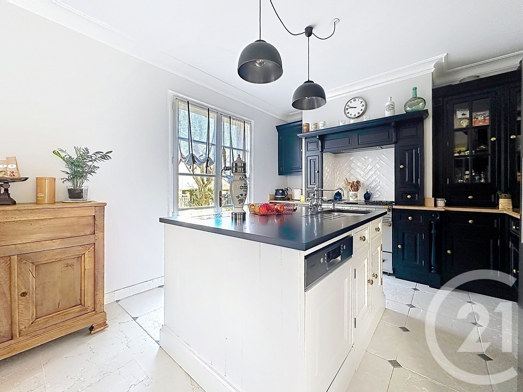 Située dans un quartier privilégié de THIAIS, votre agence Century 21 AARS Immo vous propose cette très belle maison aux prestations de qualité, développant 190 m2 habitables sur une parcelle arborée de 753 m2. Au rez-de-chaussée, vous serez immédiatement séduit par un immense salon cathédrale ( hauteur sous plafond 5.40 m) baigné de lumière, ouvert sur une spacieuse cuisine offrant un espace de vie convivial et chaleureux. Le salon est sublimé par une cheminée fonctionnelle, idéale pour vos soirées d'hiver. Au même niveau, une suite parentale confortable complète parfaitement l'espace vie principal. A l'étage, une très grande messanine offre de multiples possibilités d'aménagement: salon secondaire, bureau, espace détente bibliothèque. Vous y trouverez également deux grandes chambres, une salle d'eau moderne ains que des WC séparés. Enfin le bien dispose d'un sous-sol total comprenant: stationnements, une cave à vin, un atelier, une buanderie et une pièce de rangement. Le tramway de la ligne 9 se trouve à 10 mn à pieds. Cette maison allie charme, fonctionnalité et beaux volumes, idéale pour une famille en quête de confort et d'espace. Prix : 949000.0 euros, Honoraires charge vendeur. Bien proposé par Jean Philippe DUFFAU EI, agent commercial (RSAC 452938947)Surface Loi Carrez : 190