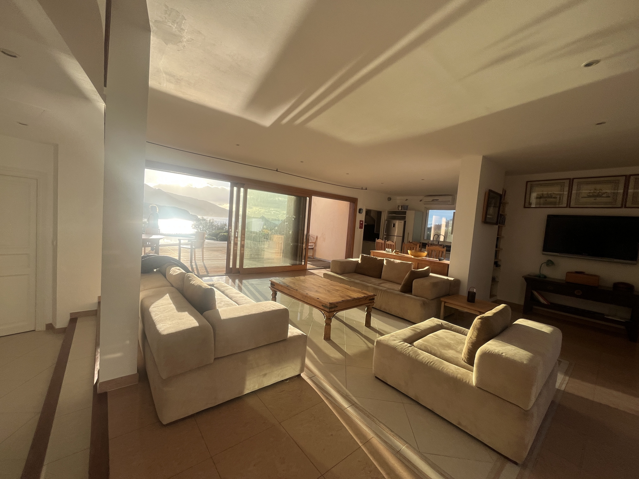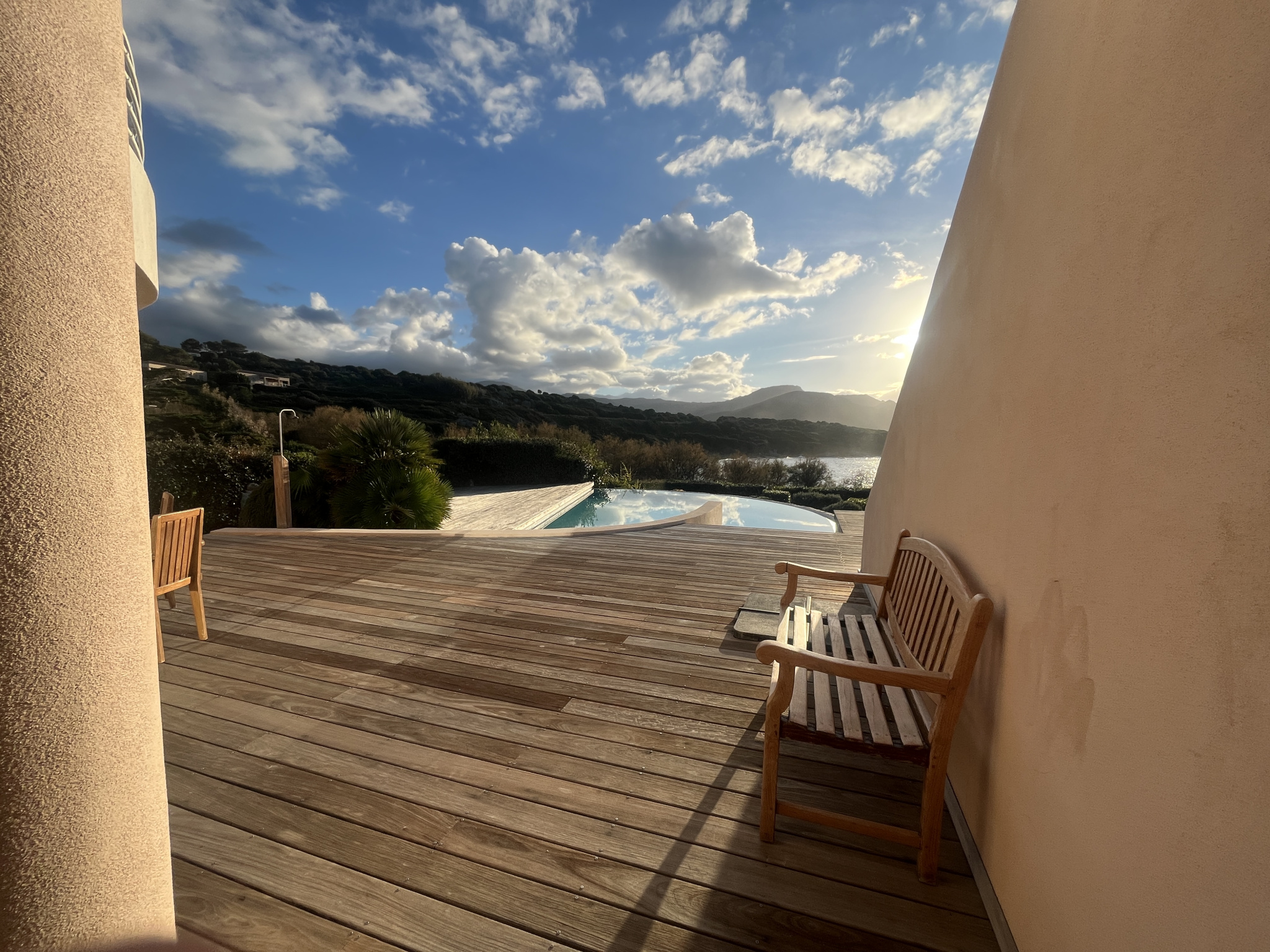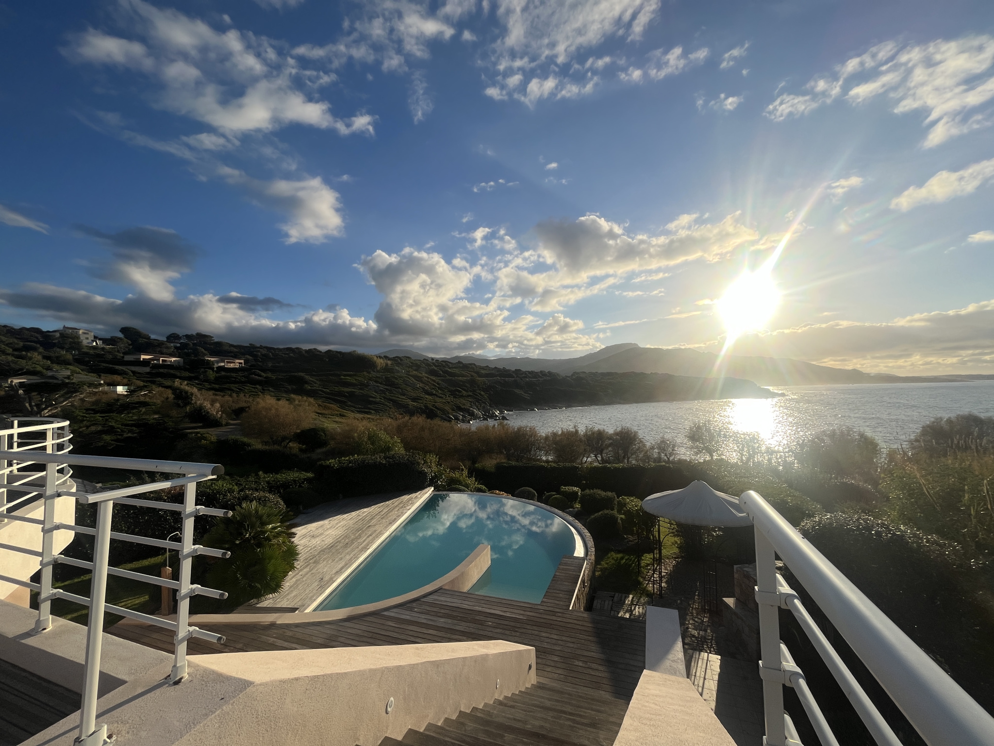 Située dans un environnement naturel préservé, cette propriété offre un cadre privilégié en bord de mer. Les terrasses en bois ouvrent sur un large panorama, avec une vue dégagée jusqu'à l'horizon et de superbes couchers de soleil.Le jardin paysager, organisé en restanques et planté d'une végétation méditerranéenne mature, garantit intimité et tranquillité. Une piscine à débordement prolonge la perspective vers la mer et crée une atmosphère de détente.