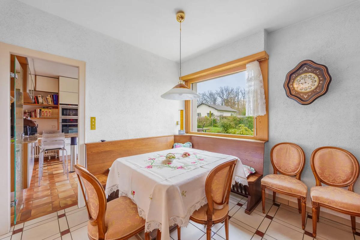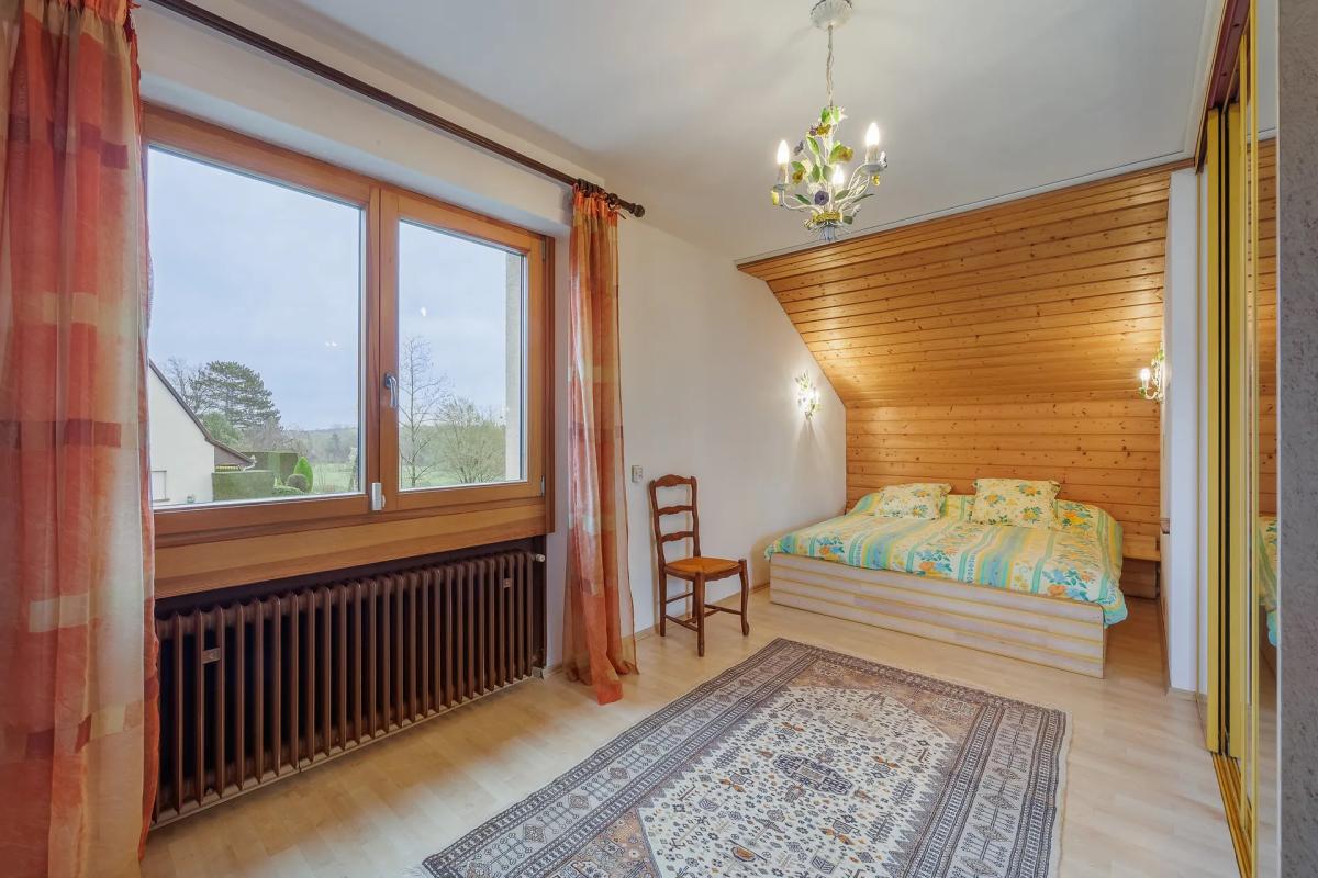 Maison de 8 pièces d'environ 215 m2 sur deux niveaux, située à Schweighouse-sur-Moder, avec 5 chambres, balcon et terrasse, le tout sur un vaste terrain paysager de plus de 1 400 m2. Cette maison profite d'un cadre verdoyant particulièrement appréciable.À l'abri des regards, la propriété se niche dans un véritable écrin de verdure, offrant un environnement propice à la détente et à la vie de famille. Les pièces de vie sont confortables, avec un salon chaleureux agrémenté d'une cheminée en pierre de Lorraine et une salle à manger conviviale. La cuisine équipée de style italien se distingue par son plan de travail en granité brésilien, combinant esthétique et praticité au quotidien.