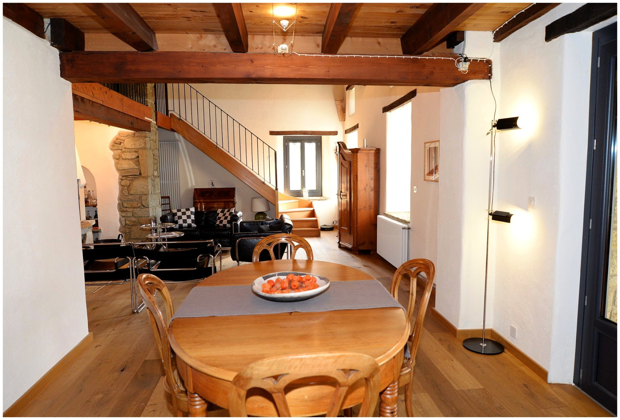 Entièrement rénovée avec goût et authenticité, la maison principale d'environ 200 m2 habitables offre plusieurs niveaux : cuisine équipée haut de gamme avec arrière-cuisine, vaste pièce de vie de 55 m2 avec cheminée, salle de bain, chambre avec mezzanine ainsi qu'une véranda avec four à pain.