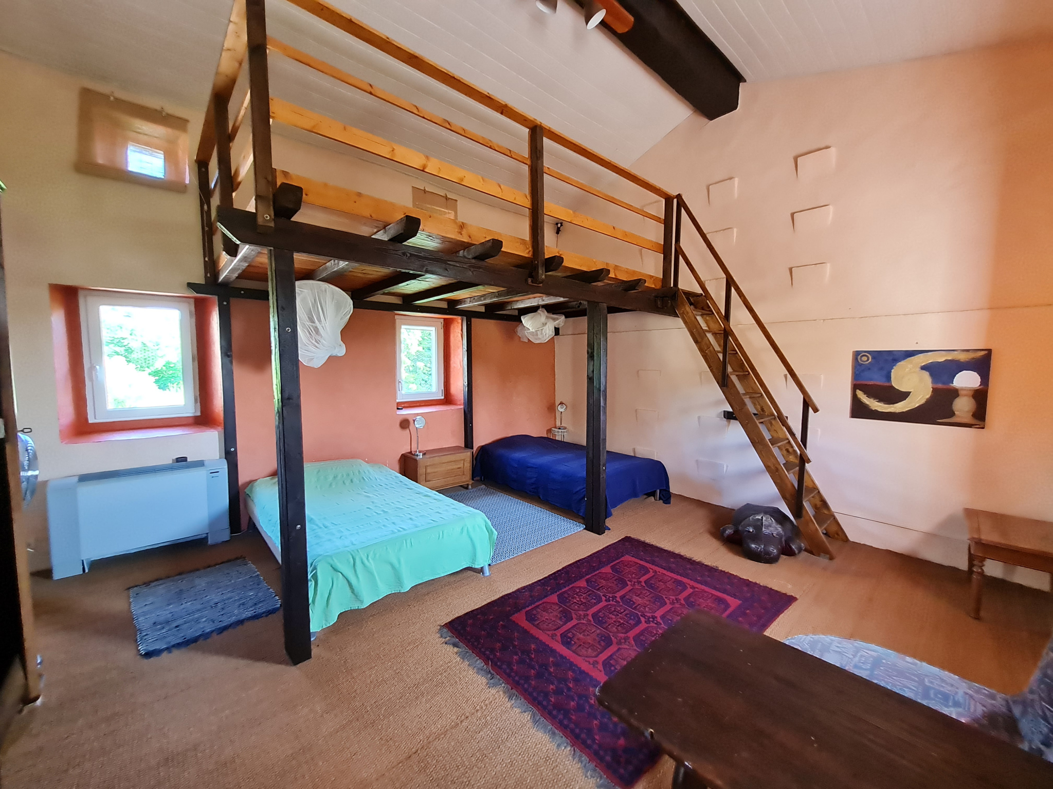 Au 2ème étage , 2 chambres supplémentaires dont une avec mezzanine , une salle d'eau/wc . L'authenticité et l'histoire du lieu ont été conservées dans chaque espace.