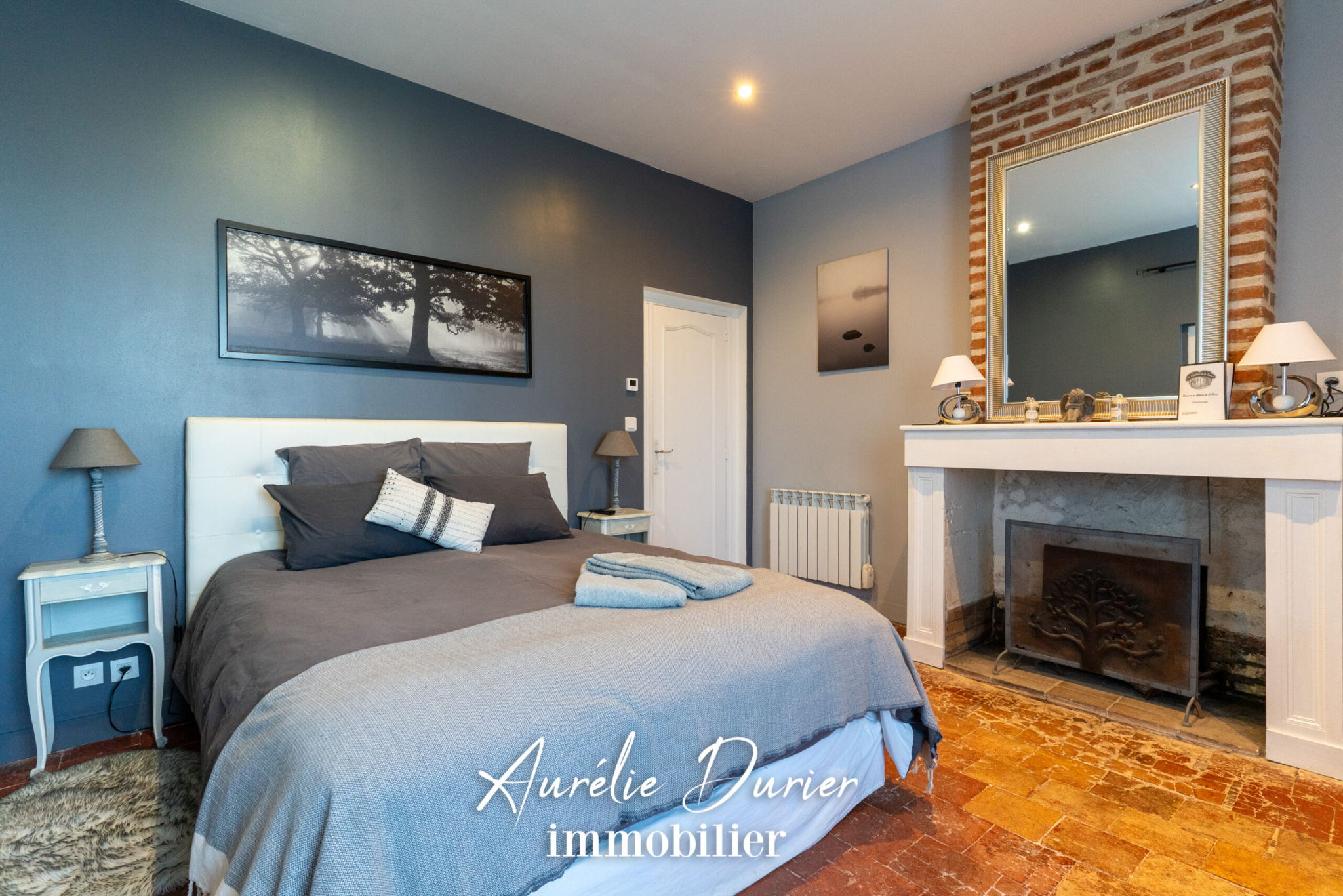 Les chambres d'hôtes sont aménagées avec soin. Au rez-de-chaussée une chambre au sol en tomette avec une cheminée décorative et sa salle d'eau privative avec WC.