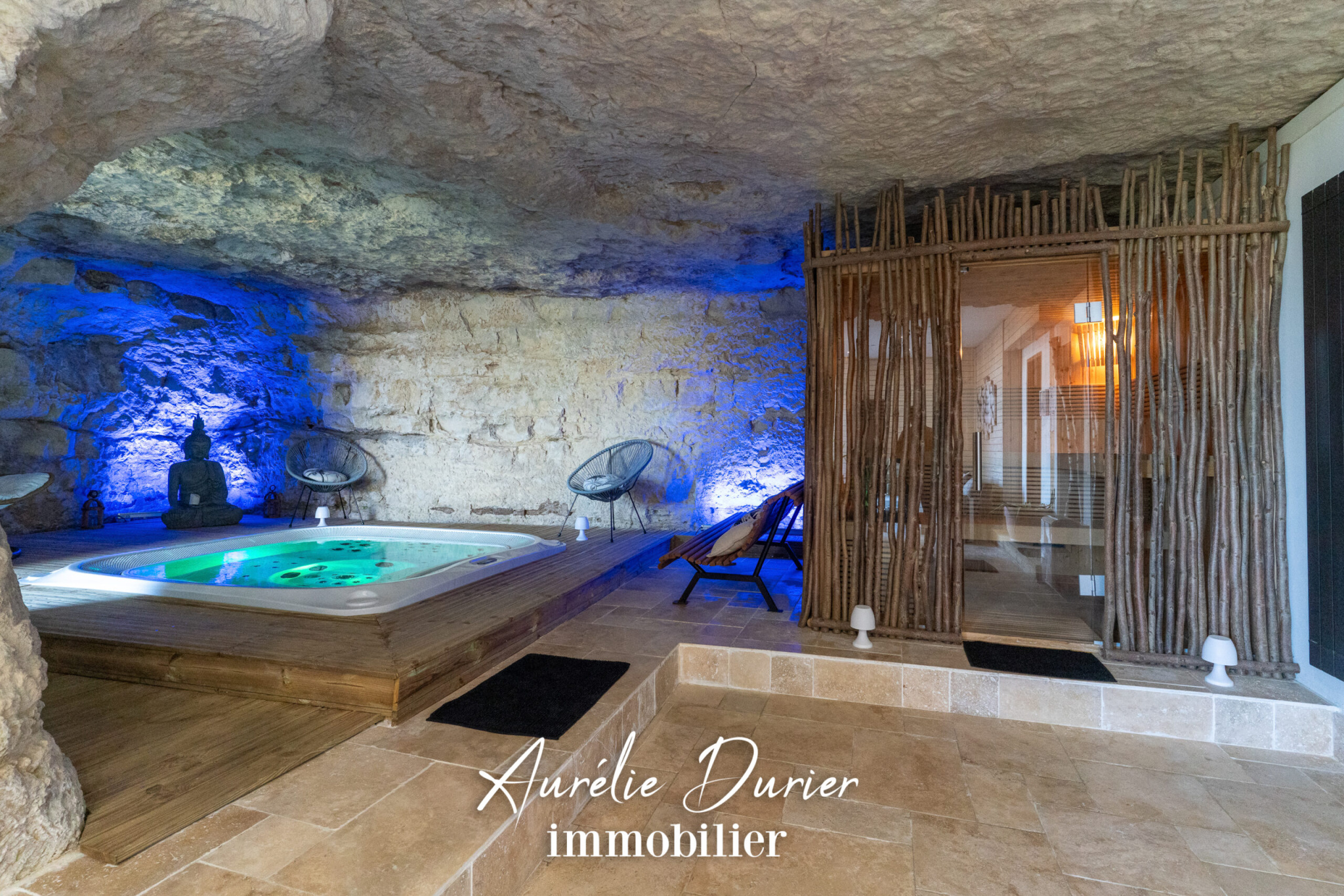 À l'extérieur, une vaste terrasse et un spa nordique offrent un cadre de détente exceptionnel parfait pour profiter des douces soirées en plein air.