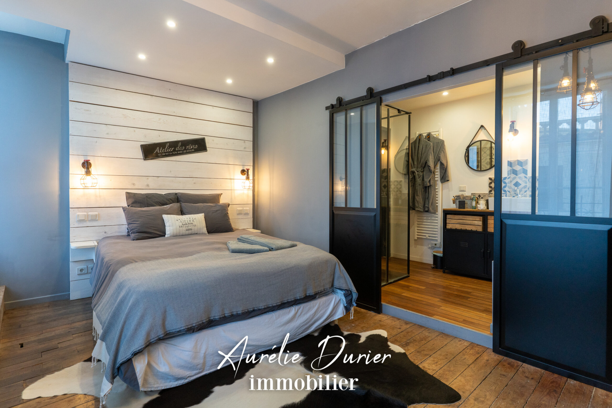 À l'étage deux magnifiques chambres chacune avec sa salle d'eau ou salle de bain privative et son univers unique.