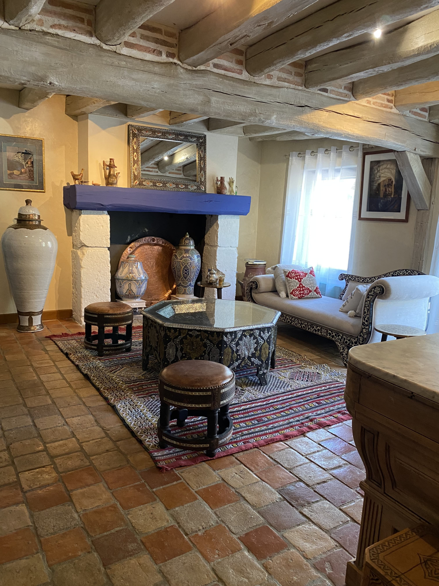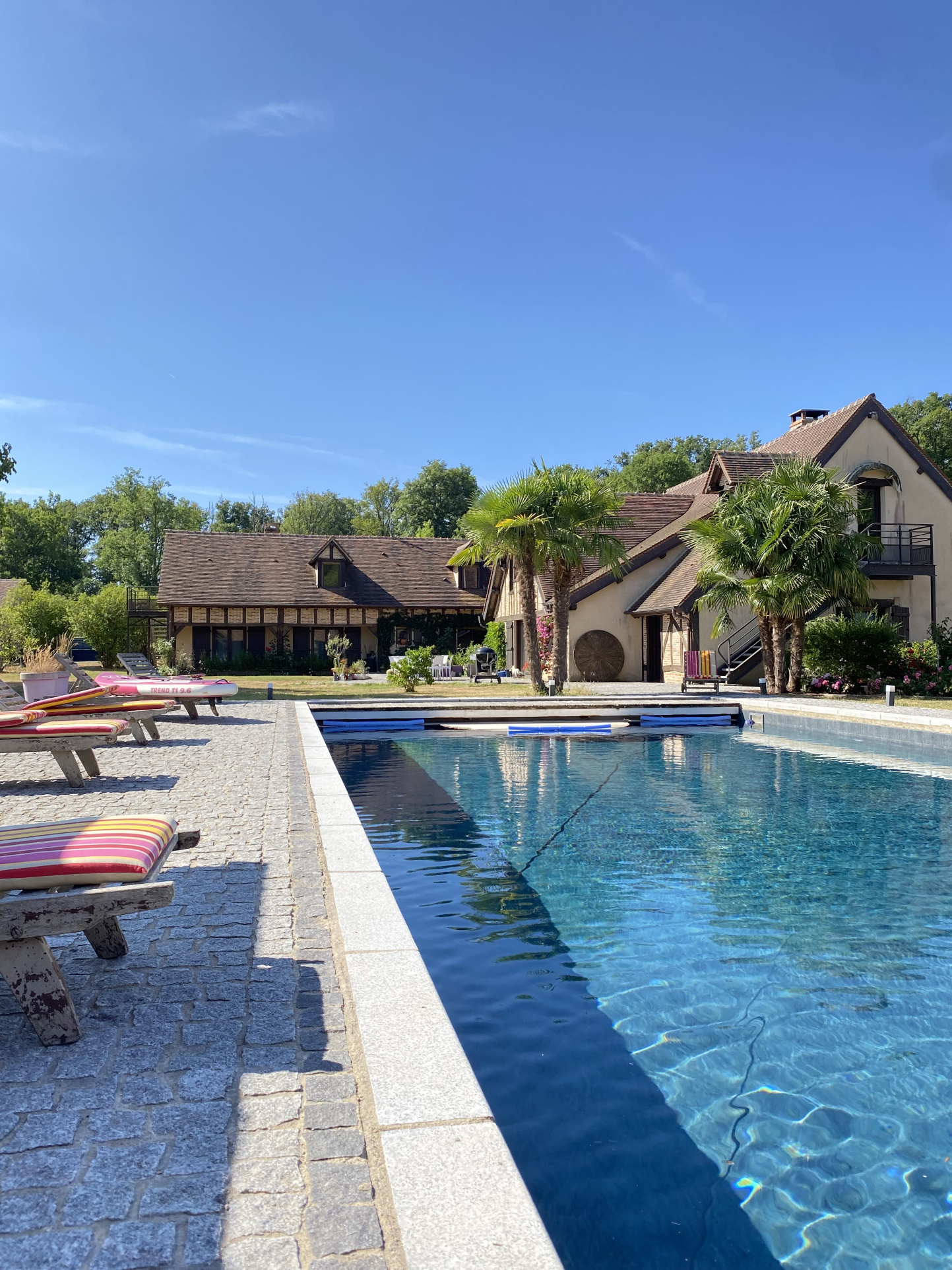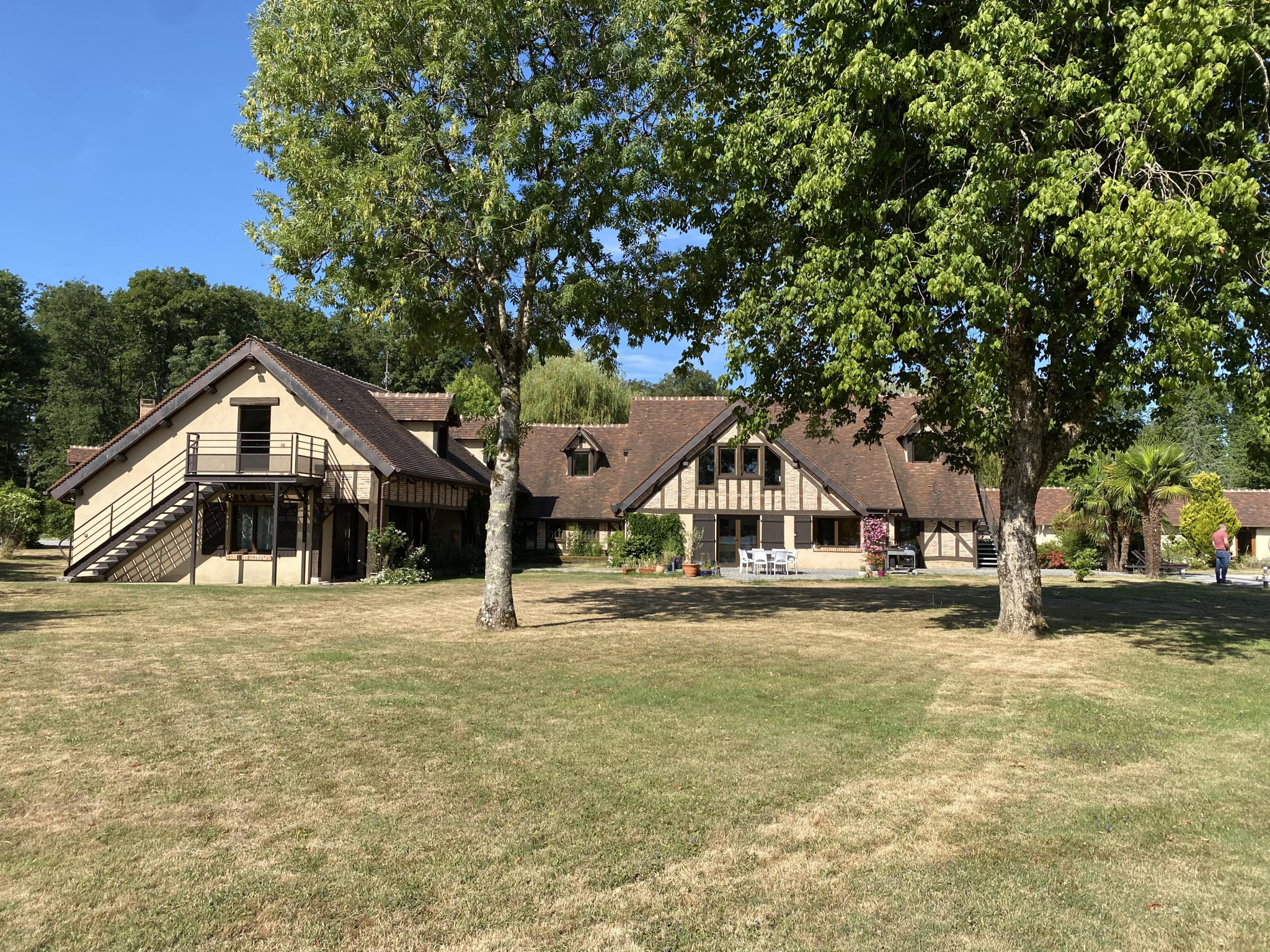 Pour recevoir en toute indépendance: une maison d'amis de 250 m2 comprenant une cuisine aménagée, salle à manger, salon avec cheminée, deux suites parentales et à l'étage une suite parentale et deux grandes chambres de 25 et 48 m2.