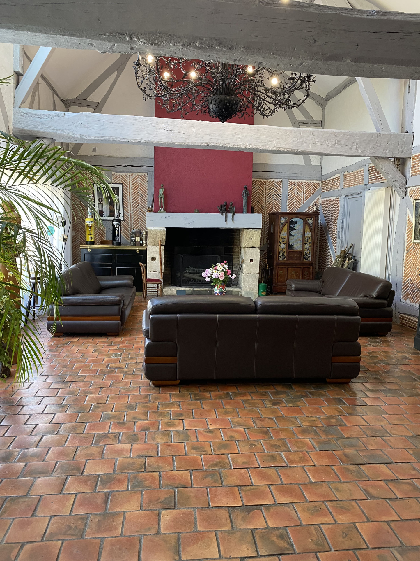 La bâtisse principale, d'environ 410 m2, allie charme, confort et volumes généreux. Dès l'entrée, on découvre un vaste vestibule, une cuisine ouverte avec un espace repas et chambre froide attenante, un séjour / salon lumineux avec cheminée, un salon de lecture plus intime, et trois belles suites parentales dont une avec cheminée, bureau, dressing, salle d'eau et WC. À l'étage, une pièce télé chaleureuse sur le palier, une suite parentale supplémentaire et un bureau avec vue sur l'étang. Deux appartements confortables de 32 et 37m2 sont à dispostion et viennent compléter la demeure.
