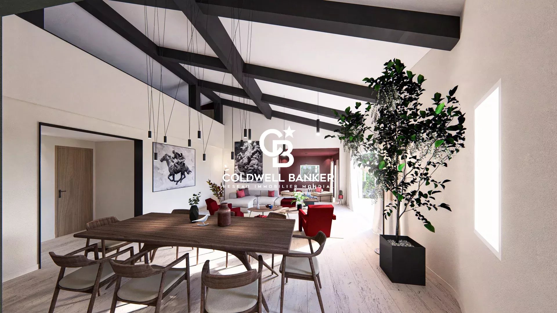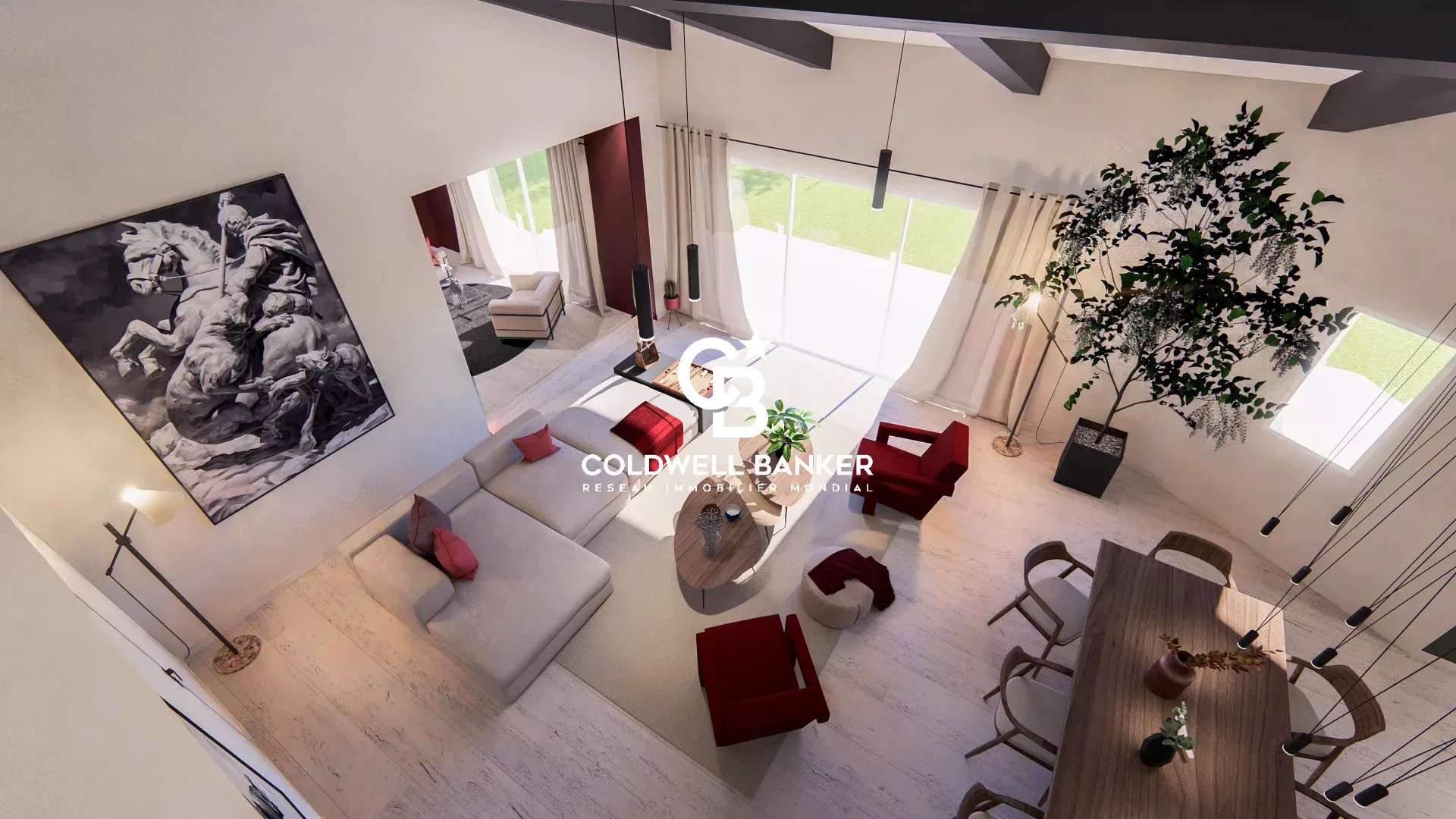 Dès l'entrée, l'élégance se révèle : un grand séjour aux volumes généreux et aux hauteurs sous plafond impressionnantes s'ouvre sur une terrasse panoramique, véritable prolongation du living où l'art de vivre prend tout son sens.