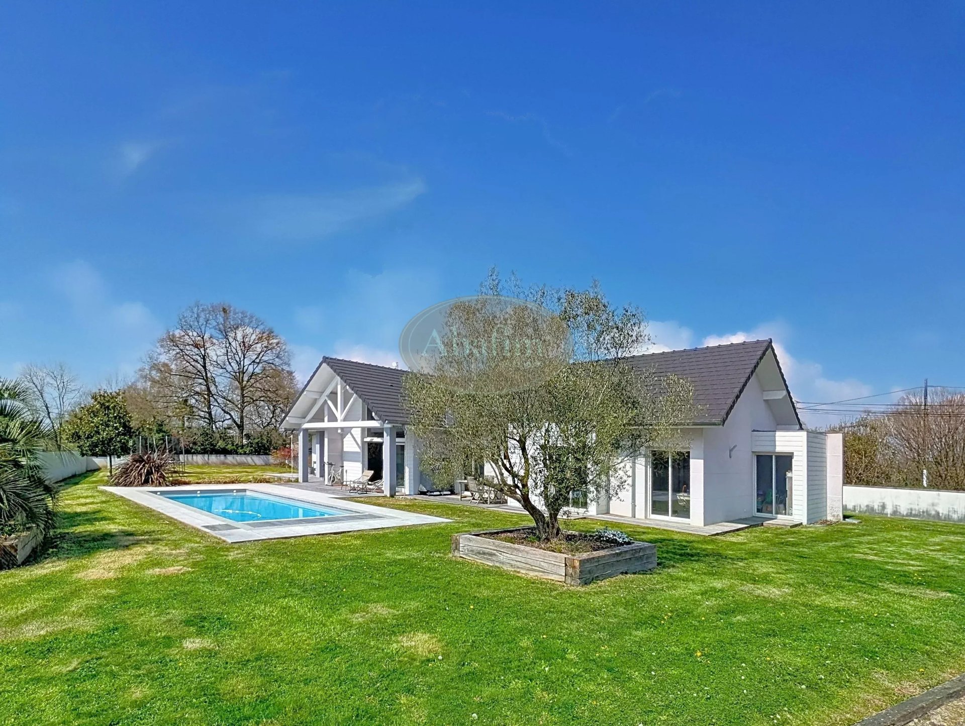 A 5 minutes de Pau, cette somptueuse villa contemporaine de plain pied (2008 – 194 m² habitables) vous offre 4 chambres dont une suite parentale, une cuisine ouverte (11m²) s'ouvrant sur une double pièce de vie (55m²) exposée plein sud et offrant un accès direct au jardin (2 900 m²) et à sa grande piscine chauffée (9 X 4).Vous serez enthousiasmés par ses volumes généreux, son architecture moderne et ses prestations haut de gamme.