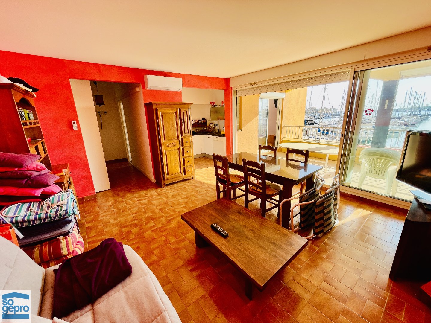 Grandes baies coulissantes offrant beaucoup de clarté et une superbe vue dégagée sur le Port.