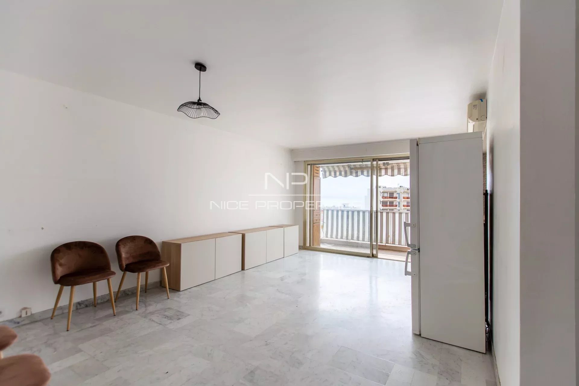 A rénover, il se compose d'une entrée avec placards, salon sur terrasse avec vue panoramique ville et mer, cuisine ouverte, deux chambres, salle de bain et salle de douche, WC séparés.