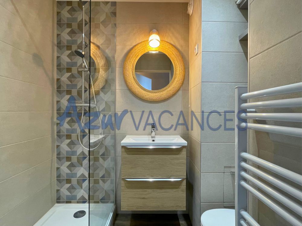 Ce studio vue mer à Cannes la Bocca est situé dans une résidence sécurisée au cœur d'espaces verts méditerranéens.