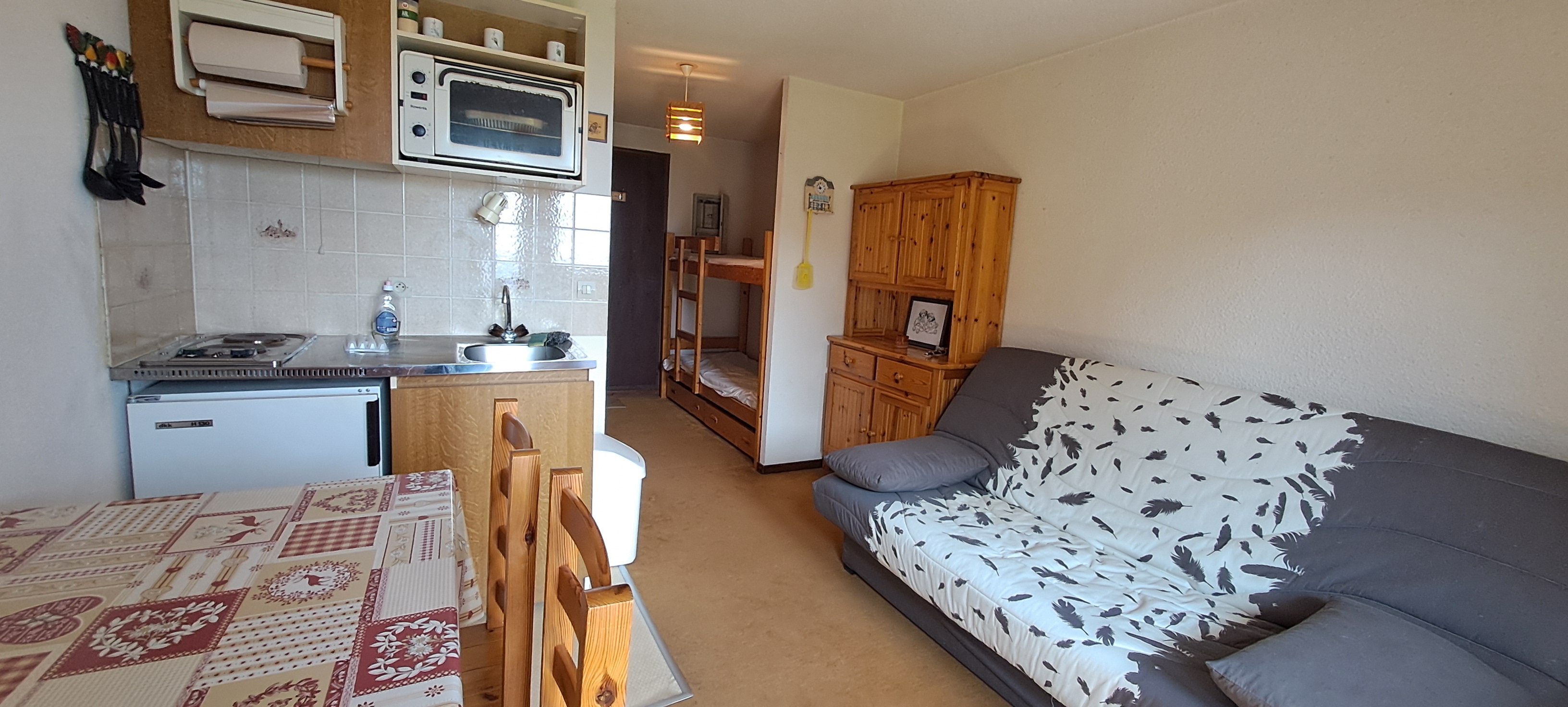 Parking résidentiel et casier à ski inclus - Pièce principale fonctionnelle à réinventer à votre goût - Salle d'eau refaite, prête à l'emploi - Vendu meublé : juste le plaisir d'emménager