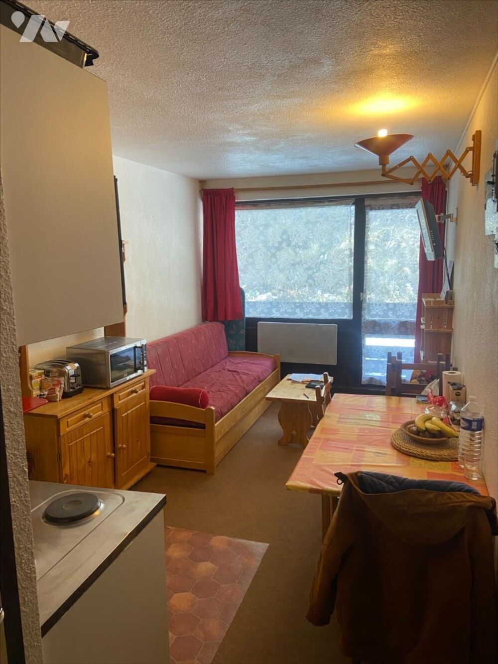 Appartement de type T1 d'environ 21m² avec possibilité de 4 couchages, à proximité des commerces et des départs des remontées mécaniques, composé de: - 1 coin cuisine ouvert sur séjour avec accès balcon - 1 chambre - 1 salle d'eau 1 WC