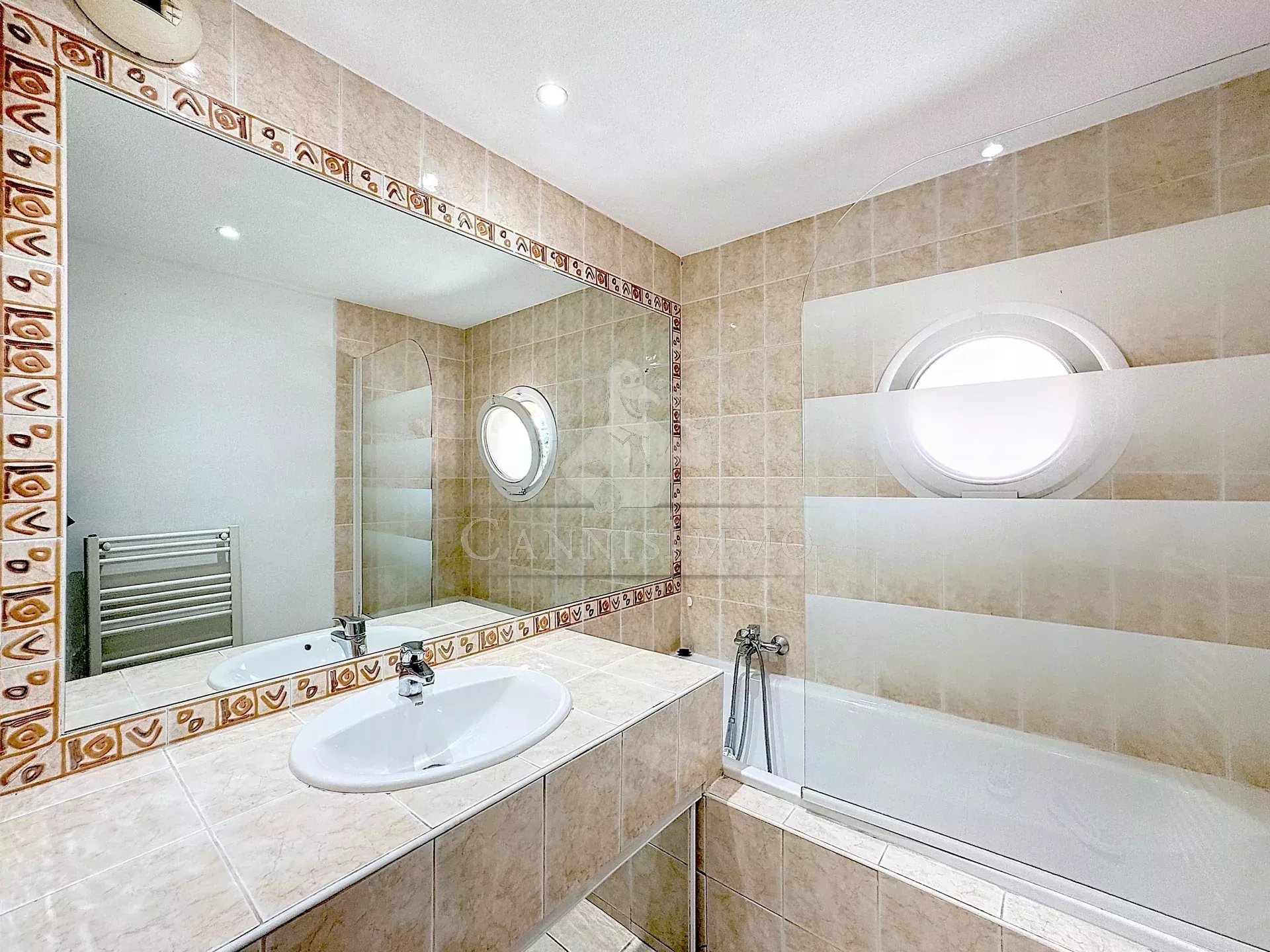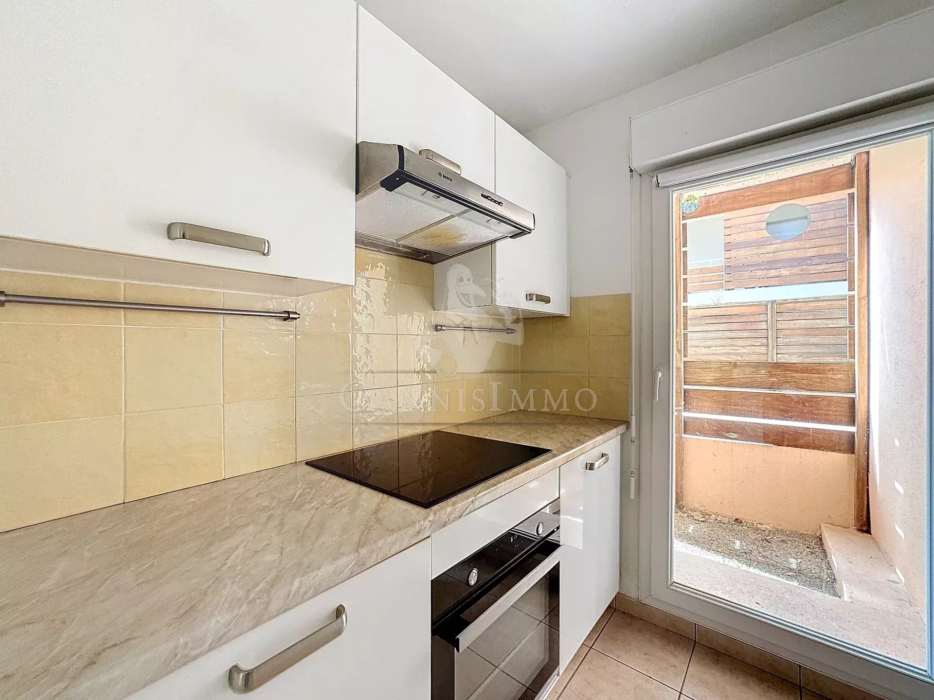 Appartement de 68 m² est situé dans le centre ville de Mandelieu-la-Napoule.Il offre une entrée réservant 2 chambres, un WC indépendant et une salle de bain d'une part, puis une cuisine indépendante (pouvant s'ouvrir sur le séjour), et un vaste séjour donnant tout accès à une terrasse de 100m2.