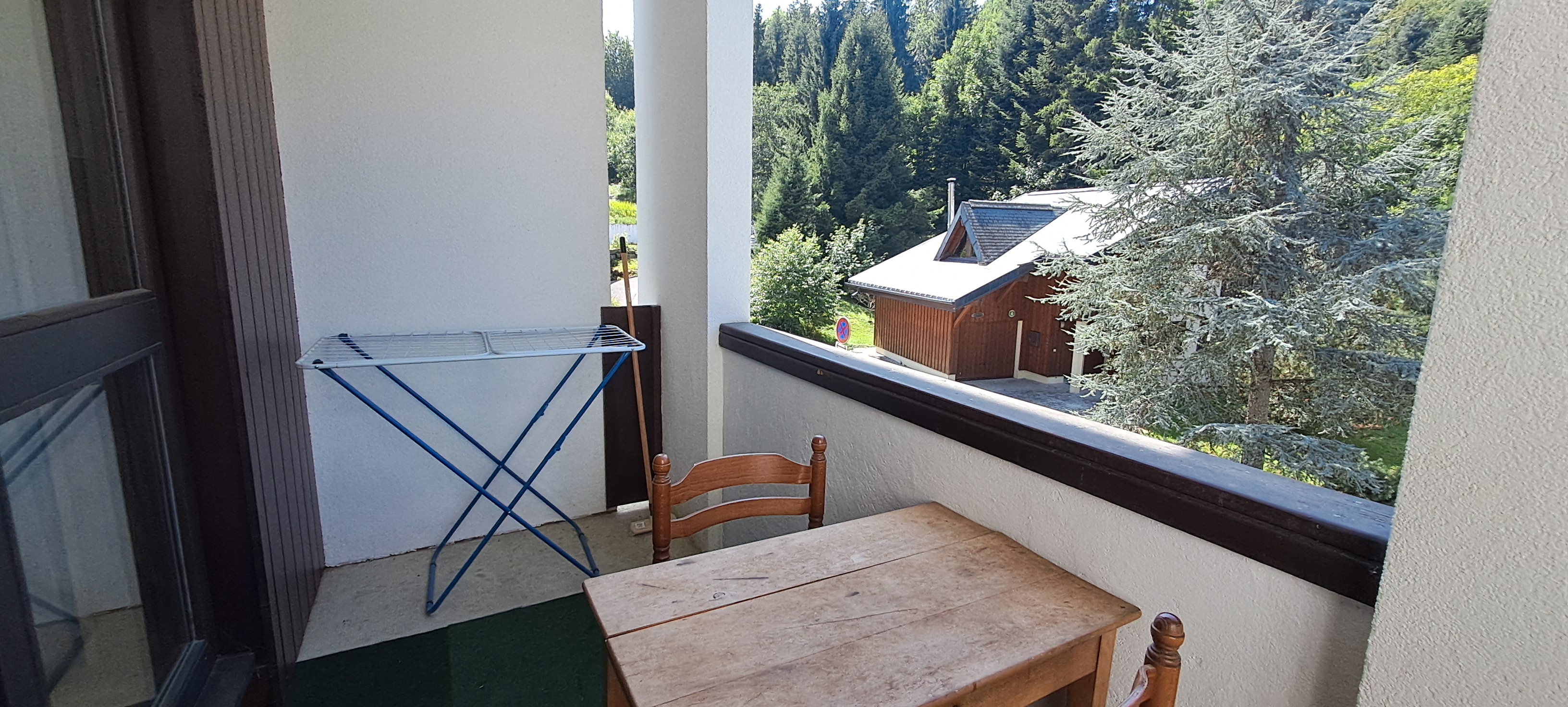 D'une surface d'environ 21 m2, il se compose d'une pièce de vie lumineuse avec cuisine équipée récente, d'un coin nuit séparé, d'une salle d'eau moderne avec WC, et d'un balcon exposé ouest offrant une agréable vue sur la forêt, sans vis-à-vis.