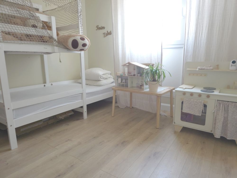 Appartement de type F4 d'une surface loi Carrez de 85 m², entièrement rénové en 2022 (huisseries et volets électriques, sols, murs, plafonds, plomberie, électricité, cuisine, salle de bains) et comprenant :