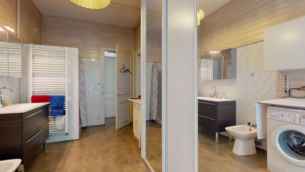 La spacieuse salle d'eau de 11 m2 avec douche dispose d'un espace lingerie ainsi que plusieurs rangements. Le WC est indépendant avec fenêtre et lave main.