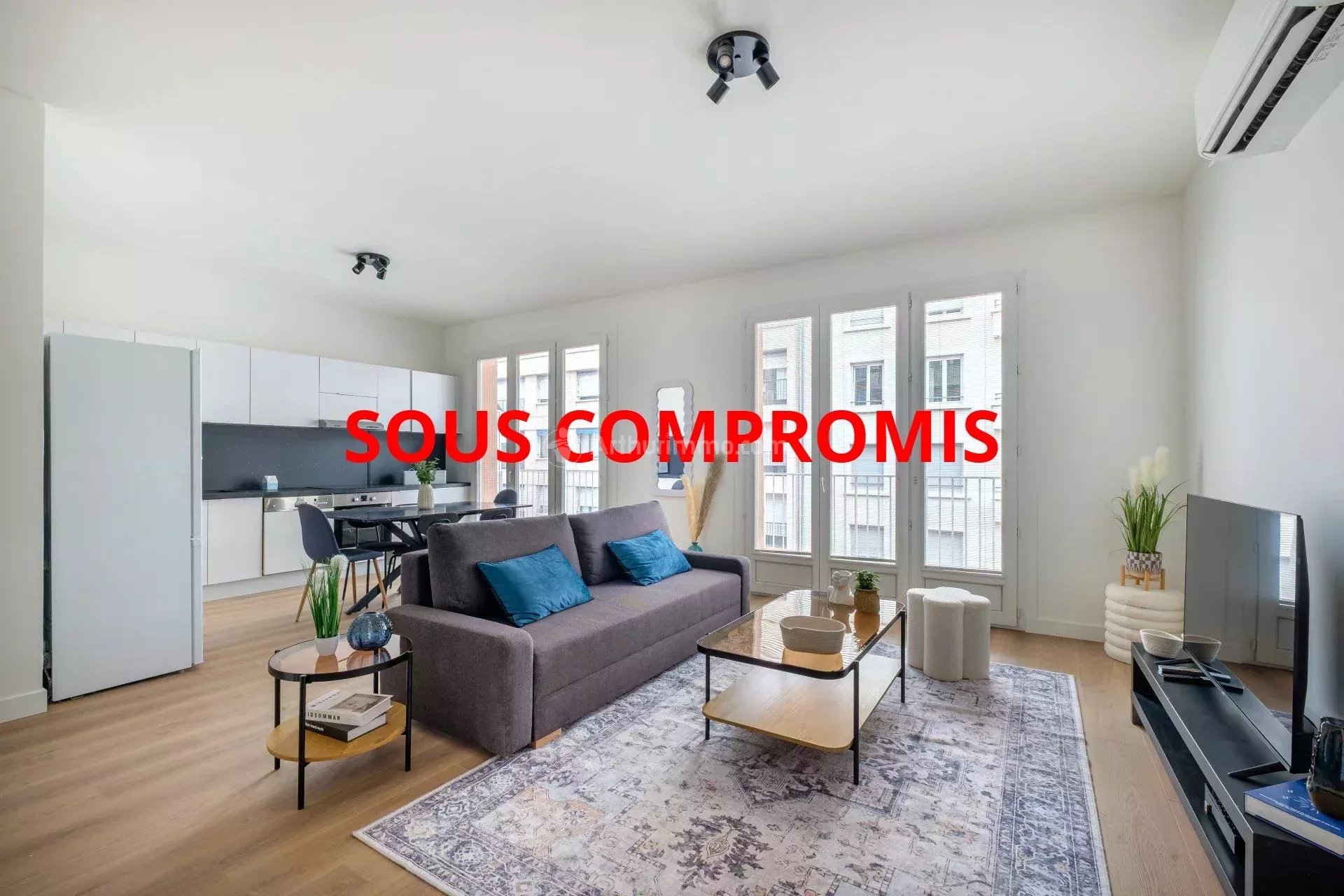 Superbe séjour / cuisine ouverte de 42 m² climatisé, avec accès à un joli balcon