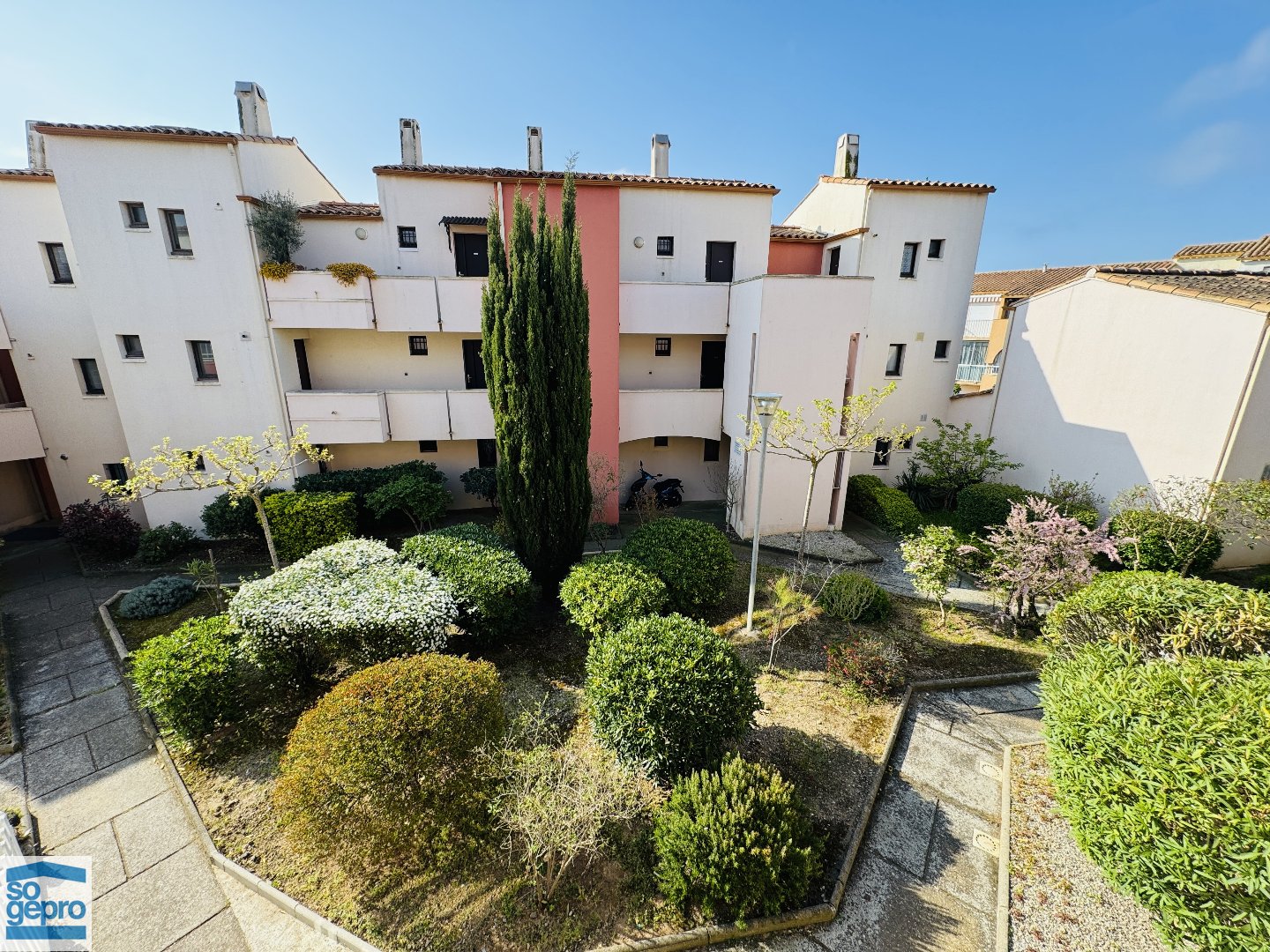 Dans une résidence sécurisée avec de beaux espaces verts.