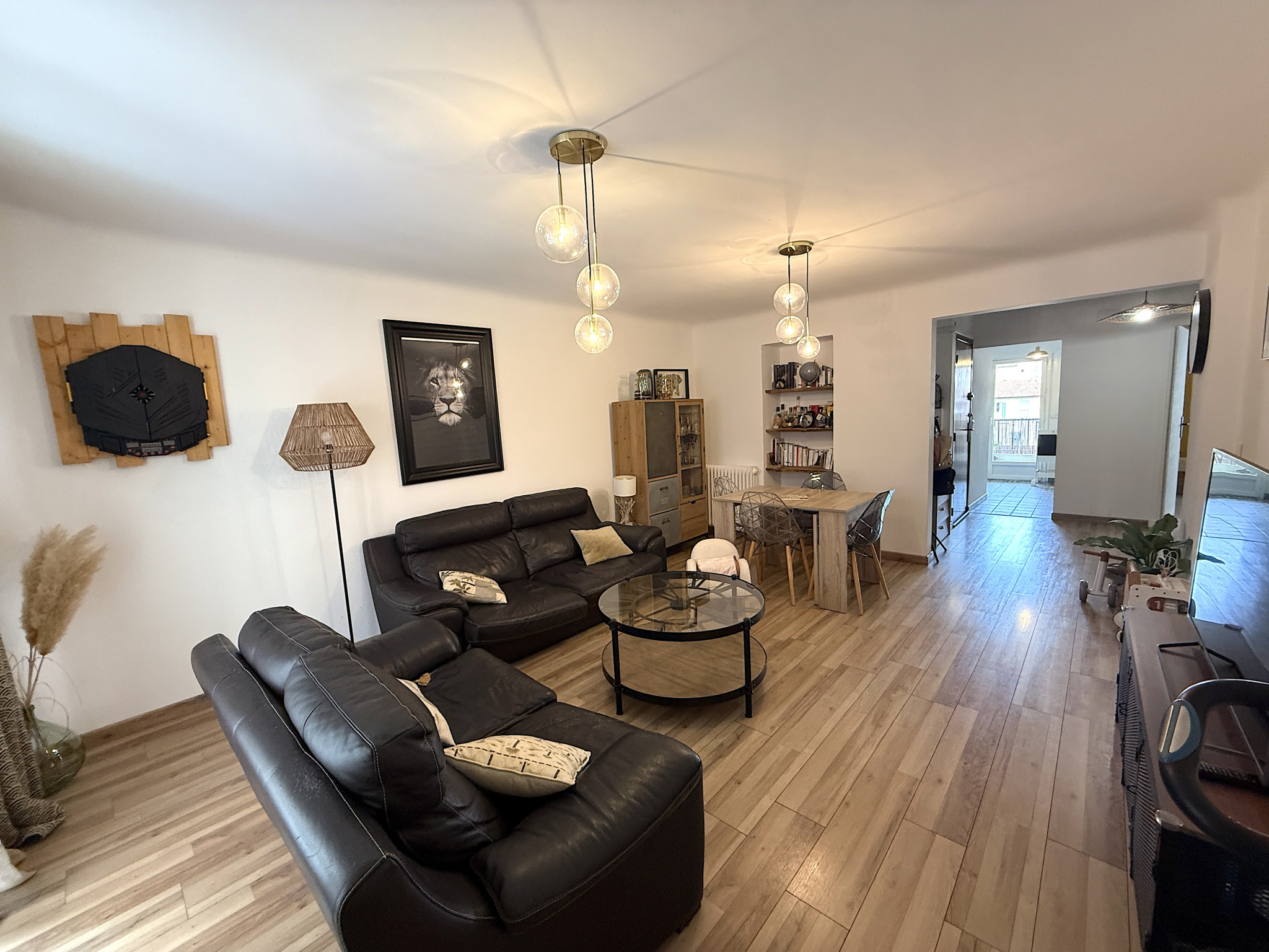 Spacieux appartement prêt à être habité, au calme et proche des commodités. Il se compose d'un grand salon-salle à manger de 22,7 m2, une cuisine toute équipée, deux chambres, salle de bains, wc séparé, grande terrasse au calme, cave et garage