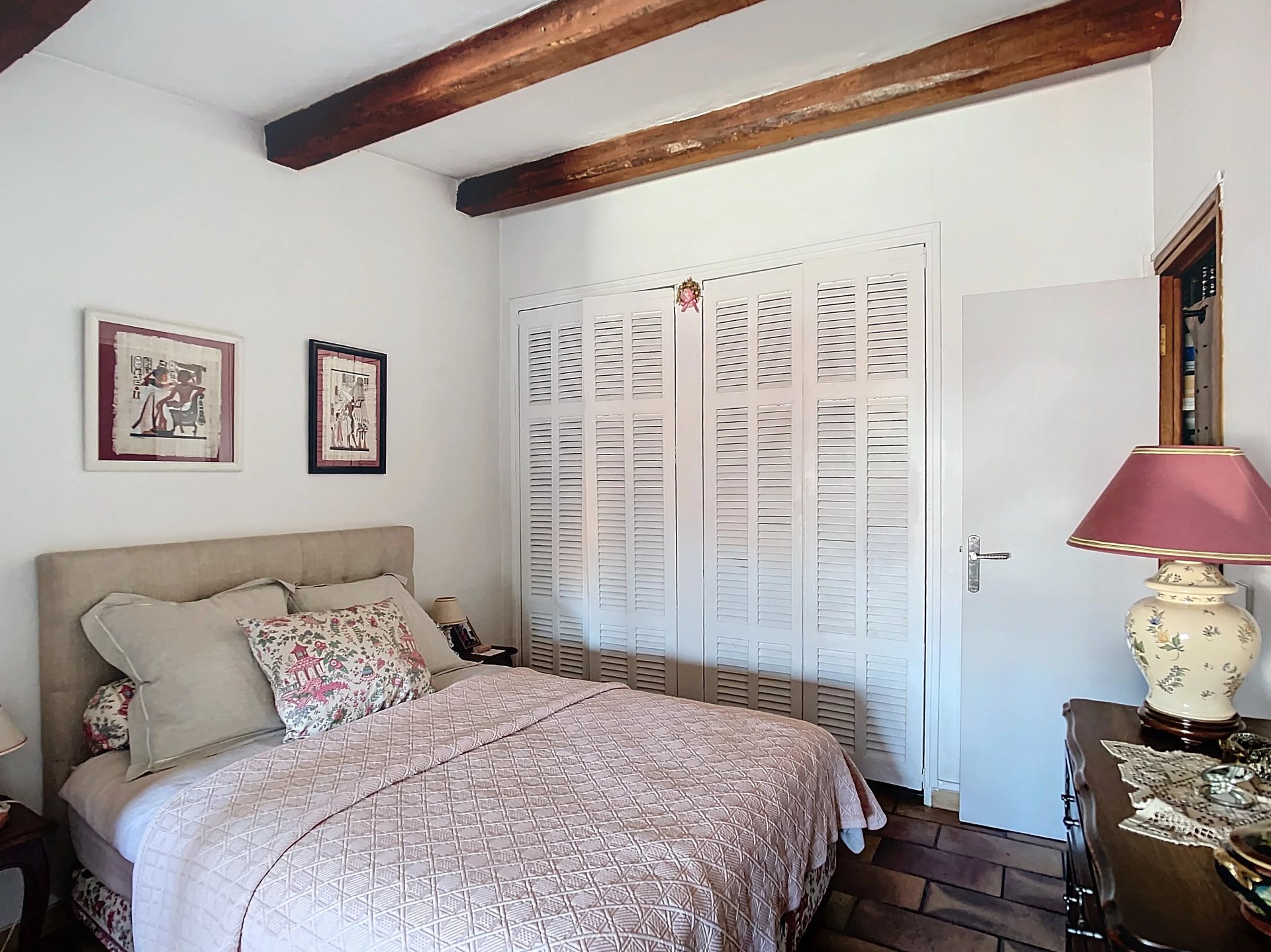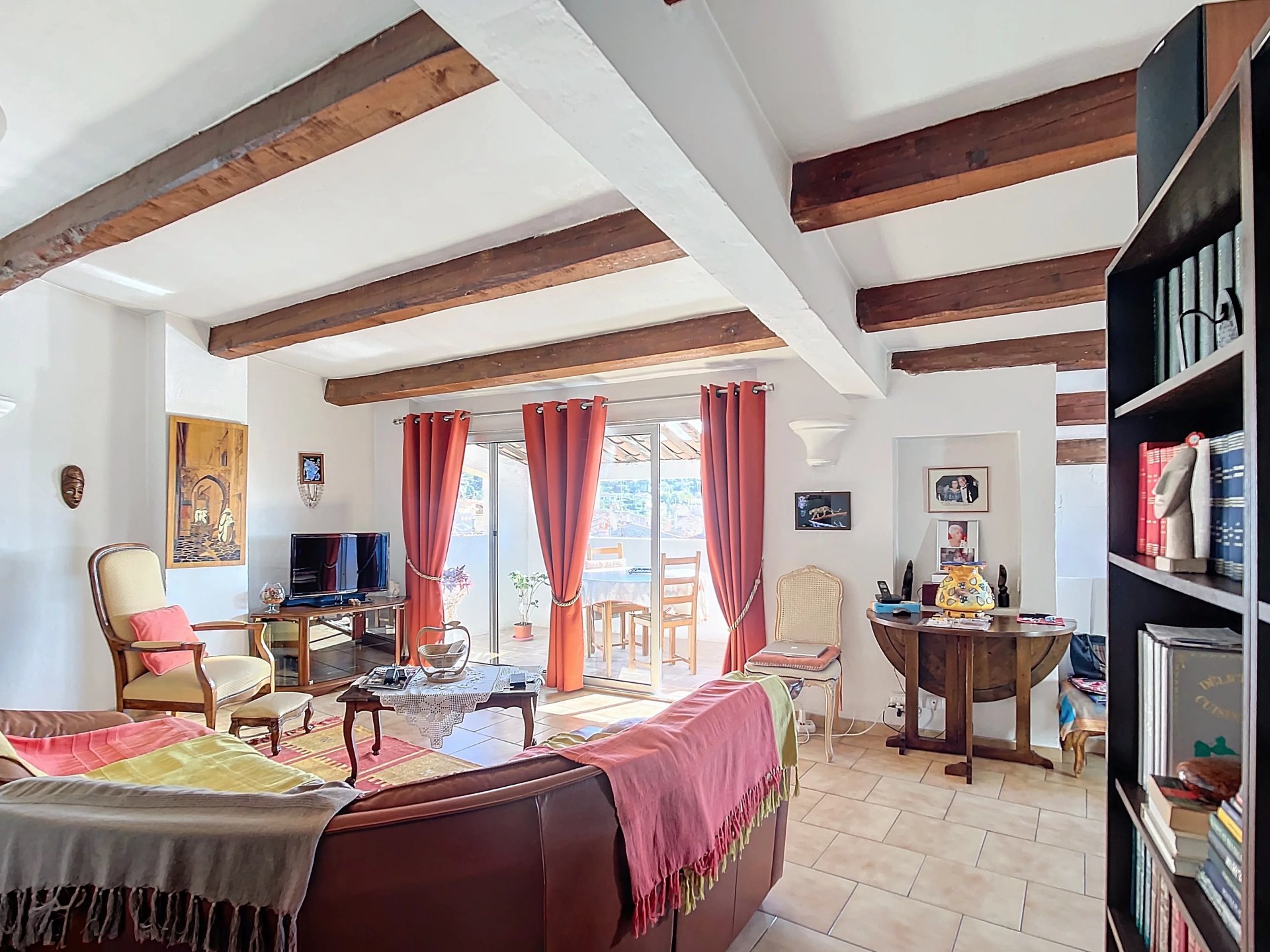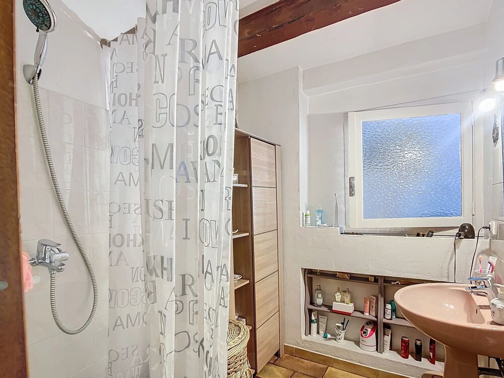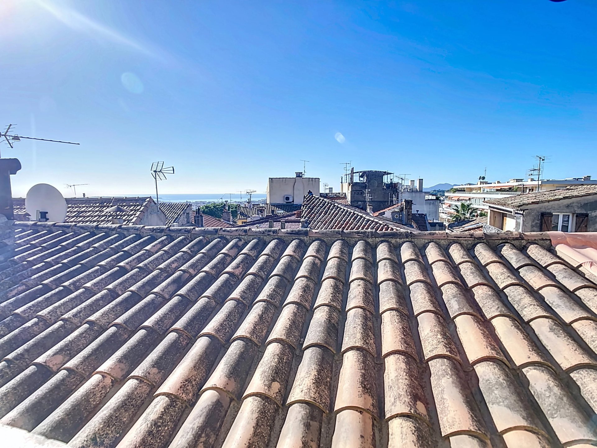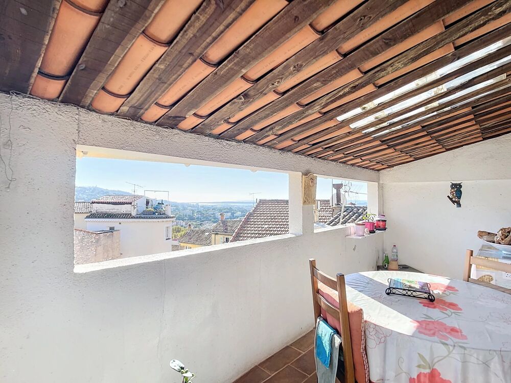 Il se compose d'une entrée, d'un séjour et une cuisine semi-ouverte avec ses poutres apparentes donnant sur agréable terrasse avec une vue atypique sur les toits et aperçue mer.