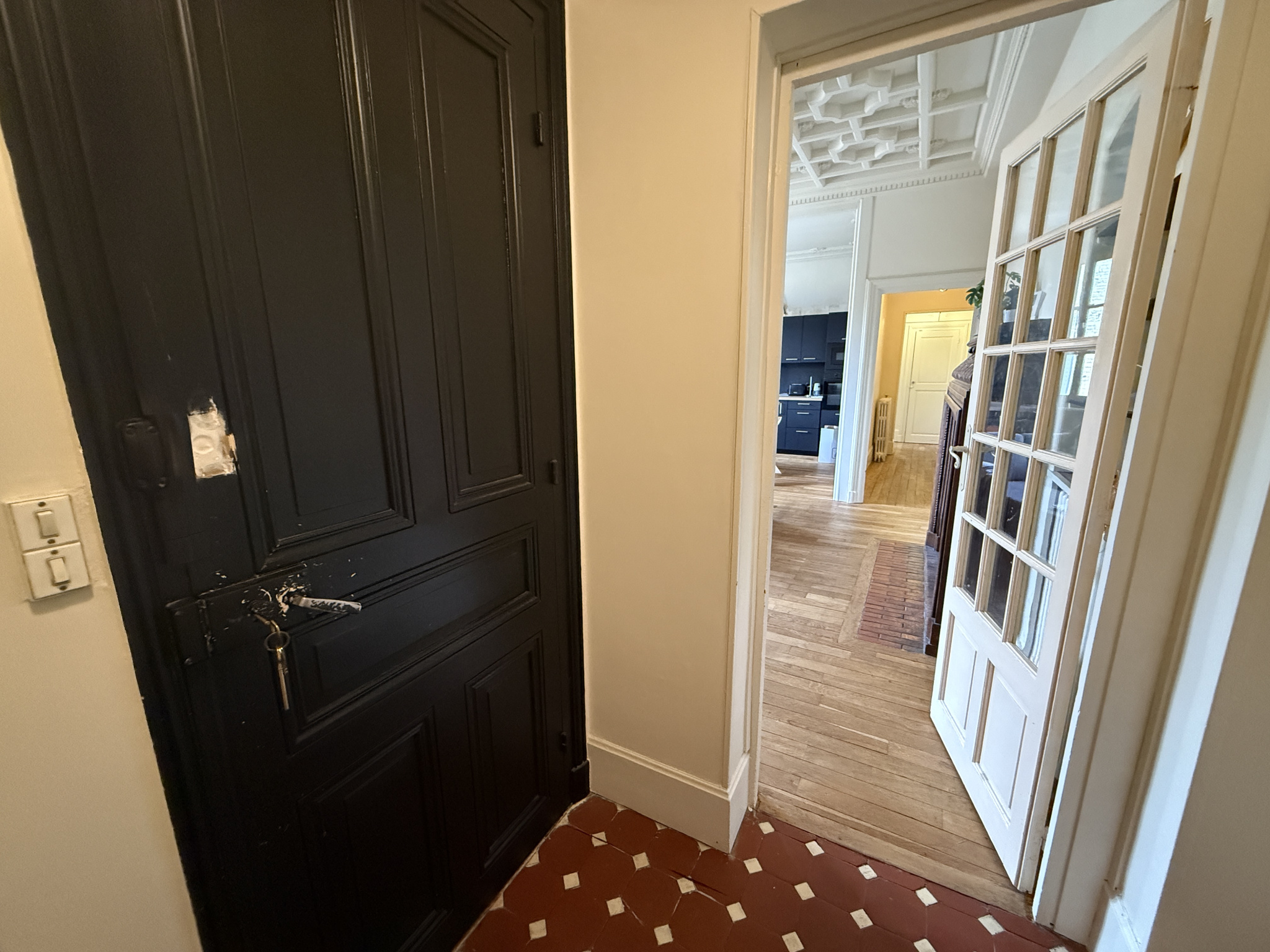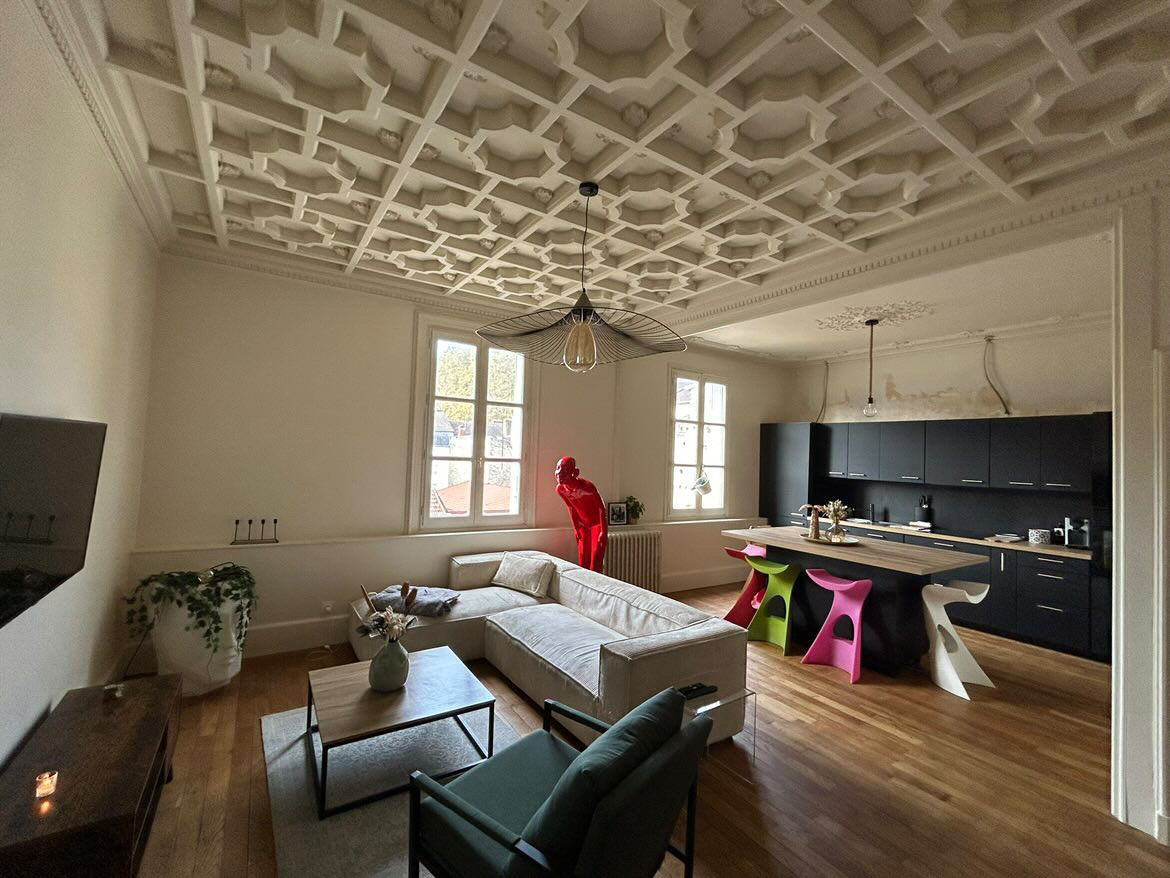 11578 EXCLUSIVITE CHALON-SUR-SAONE - Rare à la vente, à deux pas de la place Saint-Vincent, ce très bel appartement ancien de 93,65 m2, dans une petite copropriété très calme, en retrait de la rue, garantissant tranquillité et intimité, saura vous séduire. Un cachet unique : plafonds ornés de moulures en stuc, encadrements travaillés, blasons peints, parquets chaleureux. Il offre un spacieux séjour de 33,98 m2, 2 chambres dont une avec dressing attenant, une salle d'eau avec des toilettes et de nombreux rangements appréciables au quotidien. Chaudière individuelle gaz, cave et garage plus jouissance d'une place de stationnement. A voir ! Copro de 3 lots principaux. Charges moy.copro./an de 345 euros.