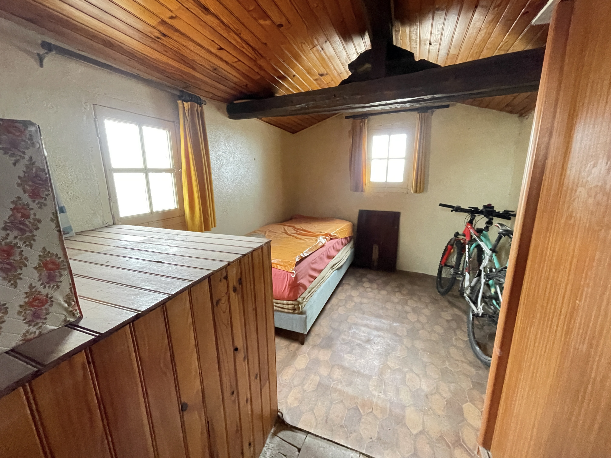Il se compose d'une entrée, d'une salle d'eau, d'un WC séparé, d'une pièce de vie, d'une cuisine indépendante, de deux chambres, ainsi que d'un espace sous combles offrant un potentiel d'aménagement supplémentaire.