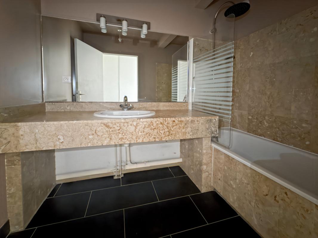 - Une salle de bain élégante avec revêtement en marbre