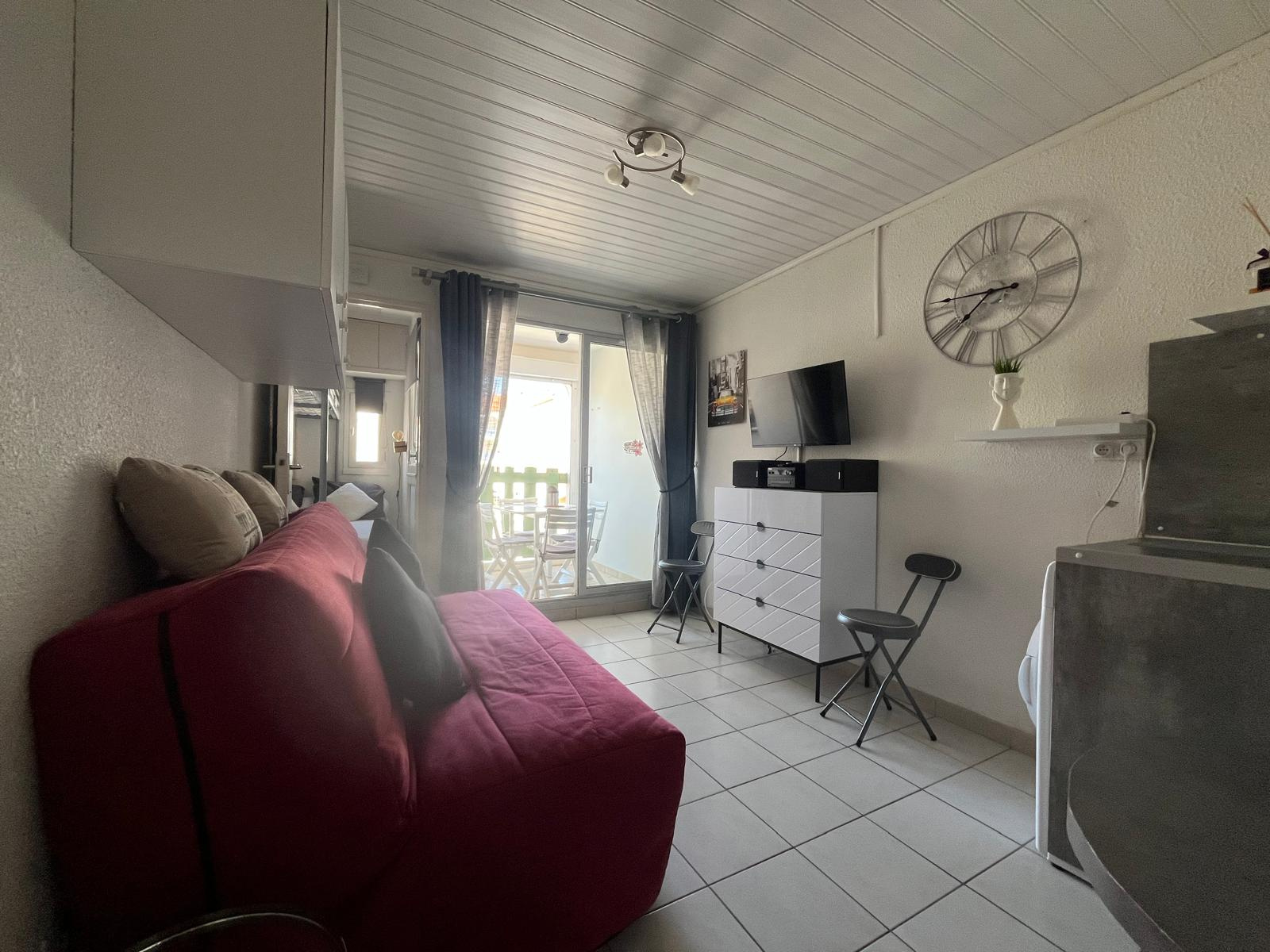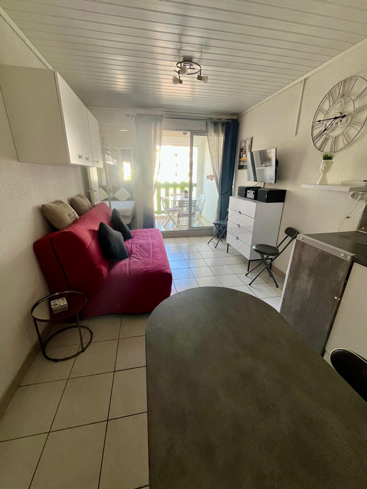 Le Barcarès Baisse de prix ! Quartier Grande Plage : investissement idéal ! Situé dans un quartier dynamique et familial, à deux pas de la place du Tertre, du marché, des commerces et du célèbre paquebot Le Lydia, ce charmant appartement T2 en parfait état offre un accès direct à la plage. Au 2e étage d'une résidence calme et sécurisée (sans ascenseur), ce bien vendu meublé et entièrement équipé est prêt à accueillir 4 à 5 voyageurs. Parfait pour un investissement locatif saisonnier, il constitue également un excellent pied-à-terre en bord de mer.L'appartement développe 21,95 m2 Loi Carrez et se compose d'une pièce de vie avec cuisine ouverte, d'une chambre séparée et d'une salle d'eau wc. Une terrasse sud et une place de parking complètent l'ensemble.Faibles charges (env. 700 €/an, eau comprise), taxe foncière : 631 €. Contactez notre agence sans attendre pour plus d'informations ou organiser une visite ! Nous sommes également spécialisés dans la location saisonnière & la conciergerie !