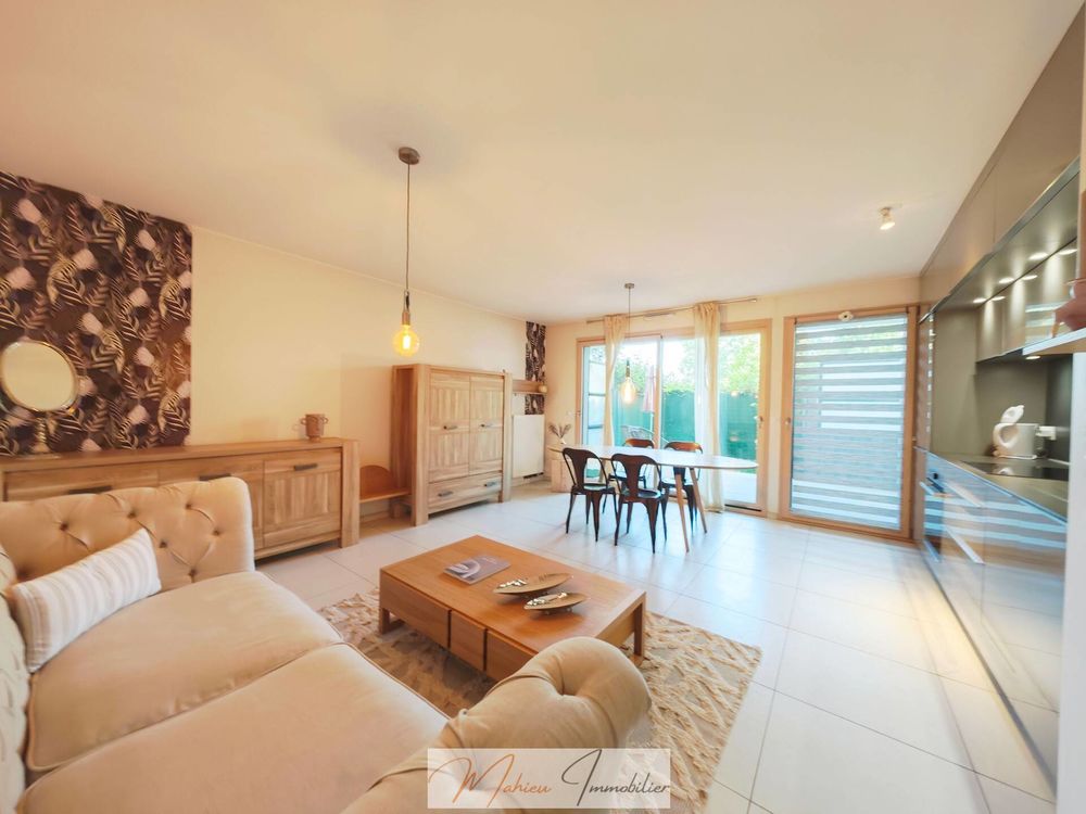 L'espace de vie s'ouvre sur un jardin/terrasse privatif intimiste de 24 m2, invitant à la détente, tandis que la cuisine entièrement équipée, élégante et fonctionnelle, comblera les amateurs de confort moderne.
