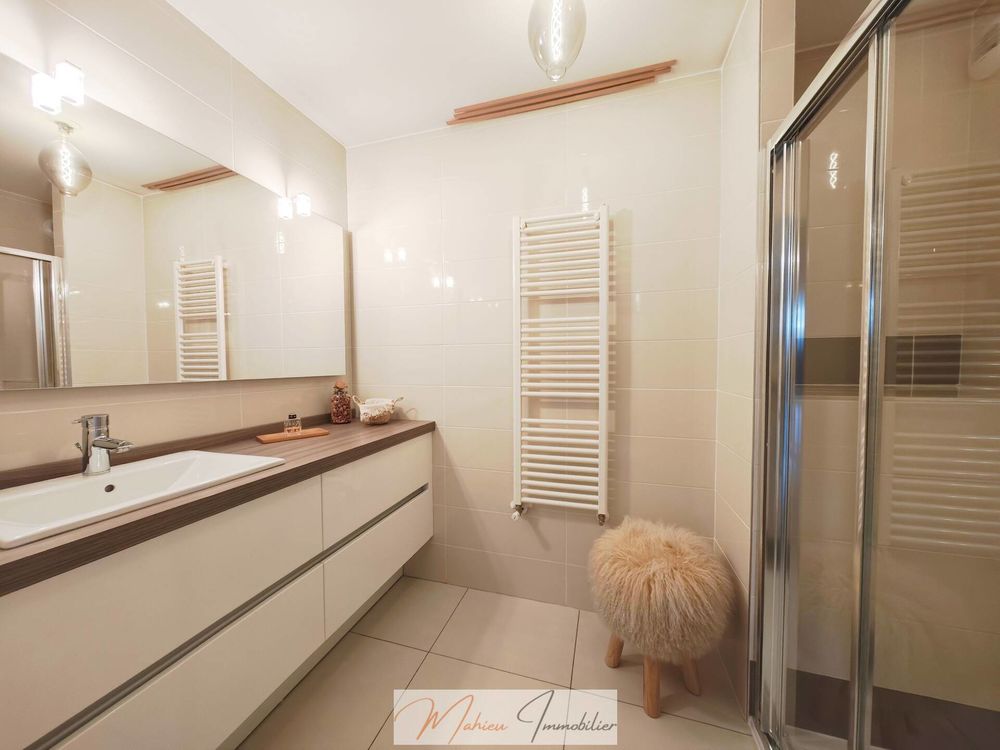 La partie nuit propose une chambre parentale avec salle de douche attenante, véritable cocon d'intimité. Une buanderie ainsi que des toilettes séparées viennent compléter l'agencement, pensé pour conjuguer praticité et élégance.